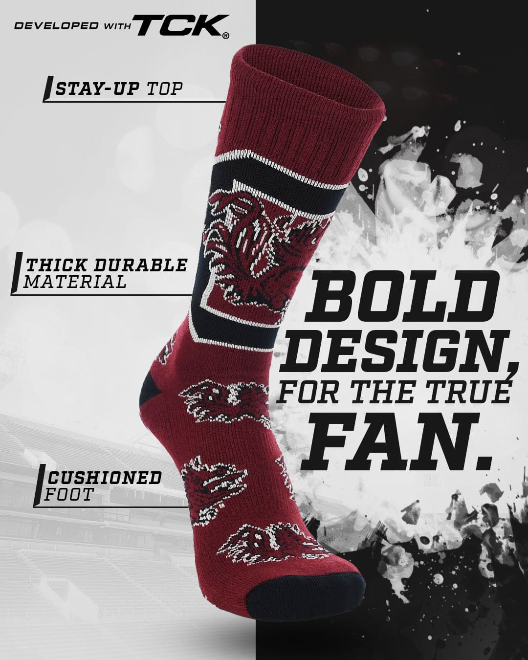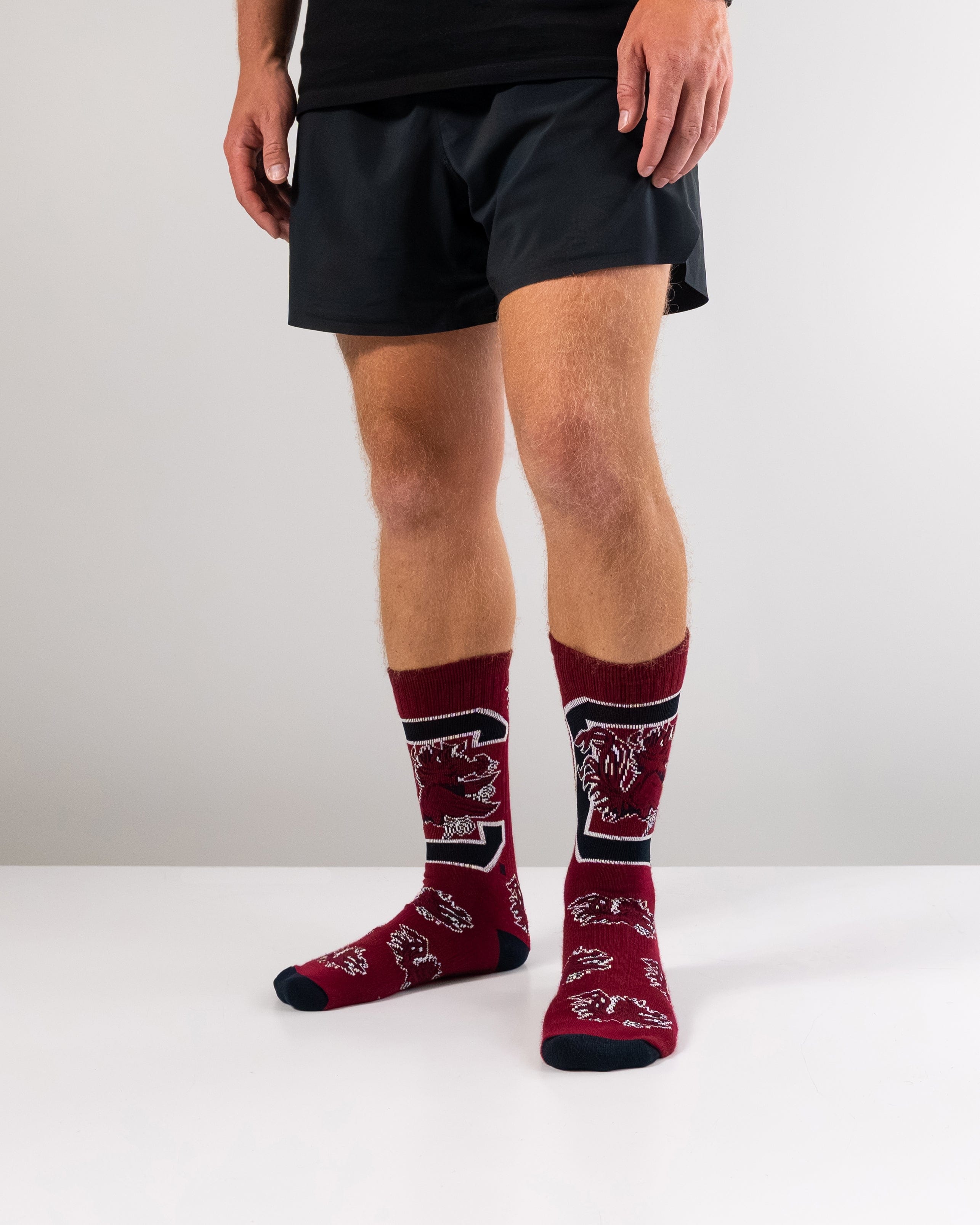Step into the Mayhem and show off your Gamecocks pride with socks built for both spirit and performance. Whether you're hitting the gym or heading to class, these versatile socks pair perfectly with sneakers or slides. Designed for comfort, breathability, and durability, they make a great gift for Father’s Day, birthdays, back-to-school, or stocking stuffers. Made from a high-quality blend of 94% Polyester, 4% Rubber, and 2% Spandex. Go Cocks!