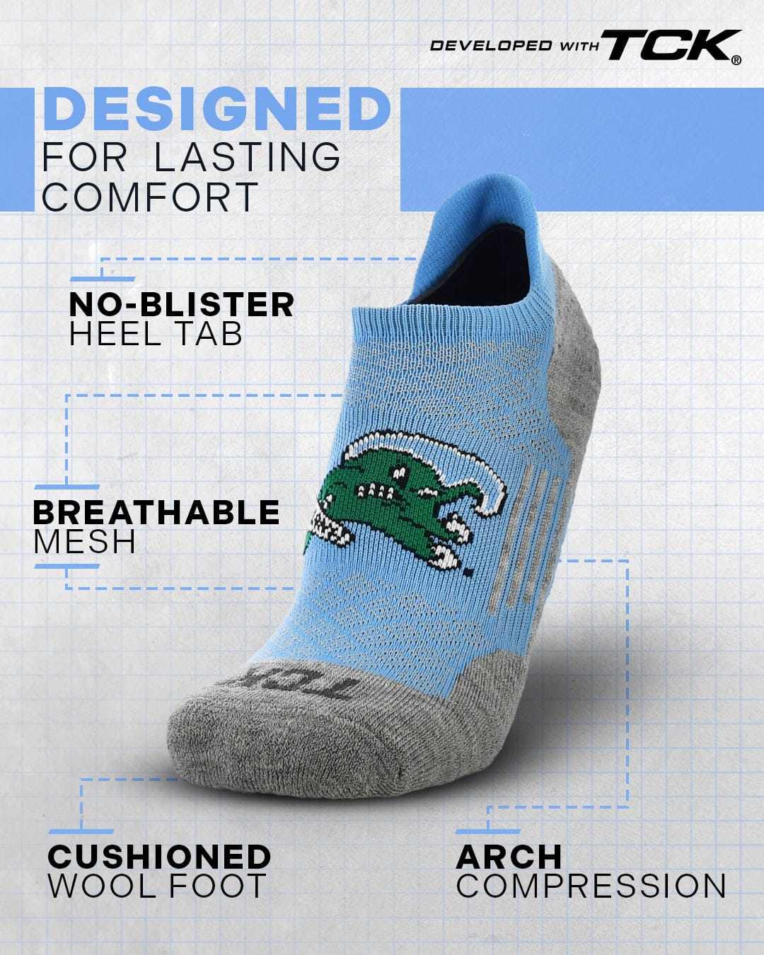 Step up your sock game with TCK's Tulane Green Wave no show socks, high performance NCAA sock made in the USA. Designed for sneakerheads, golfers, runners, and fans alike, these socks feature a soft merino wool footbed, breathable mesh upper, arch support, and a smooth toe seam. The heel tab protects without showing. Perfect for all-day comfort, year-round wear, and gifting for birthdays, Father's Day, grads, or Christmas.
