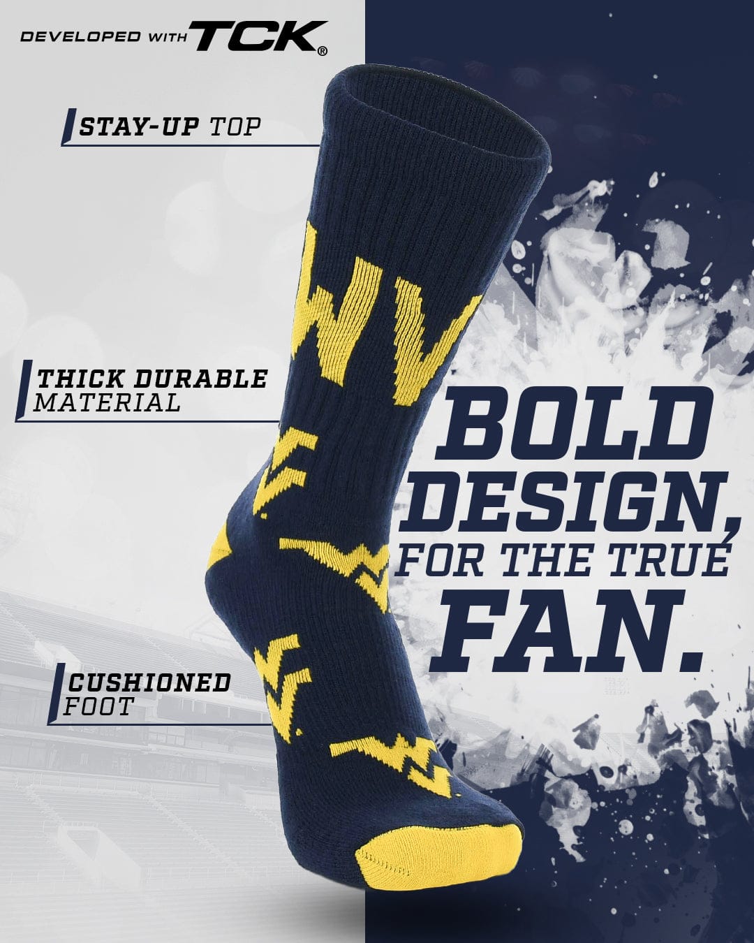 Step into the Mayhem and show off your Mountaineers pride with socks built for both spirit and performance. Whether you're hitting the gym or heading to class, these versatile socks pair perfectly with sneakers or slides. Designed for comfort, breathability, and durability, they make a great gift for Father’s Day, birthdays, back-to-school, or stocking stuffers. Made from a high-quality blend of 94% Polyester, 4% Rubber, and 2% Spandex. Hail West Virginia!