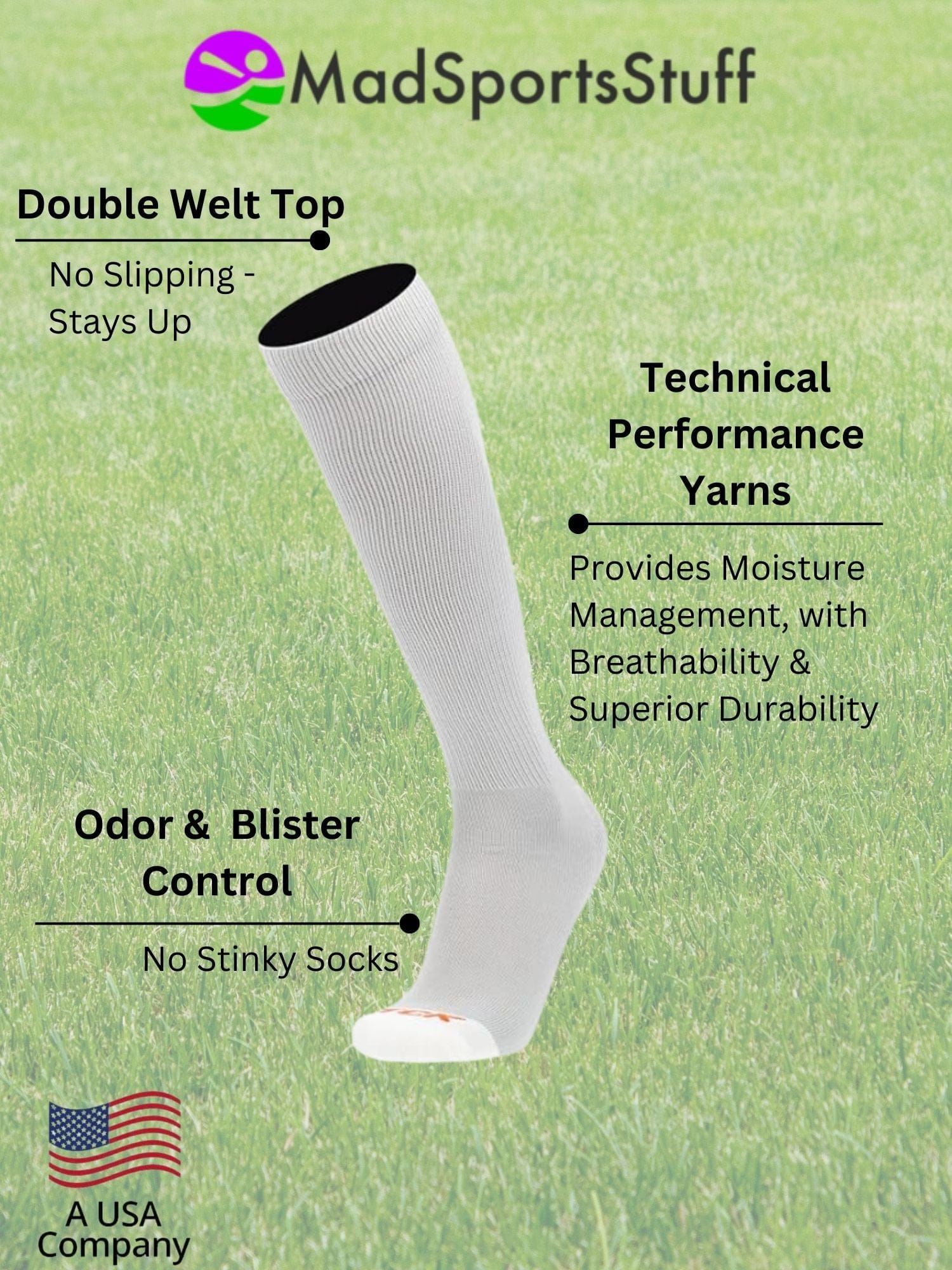 These high performance, moisture wicking, multi-sport over the calf socks are an ideal weight and length for baseball, softball, and football.