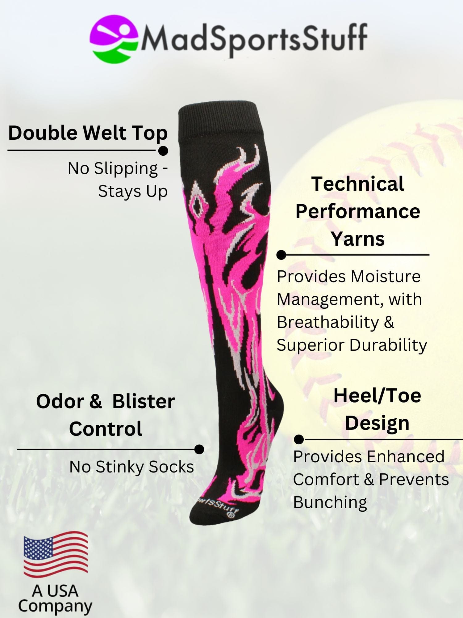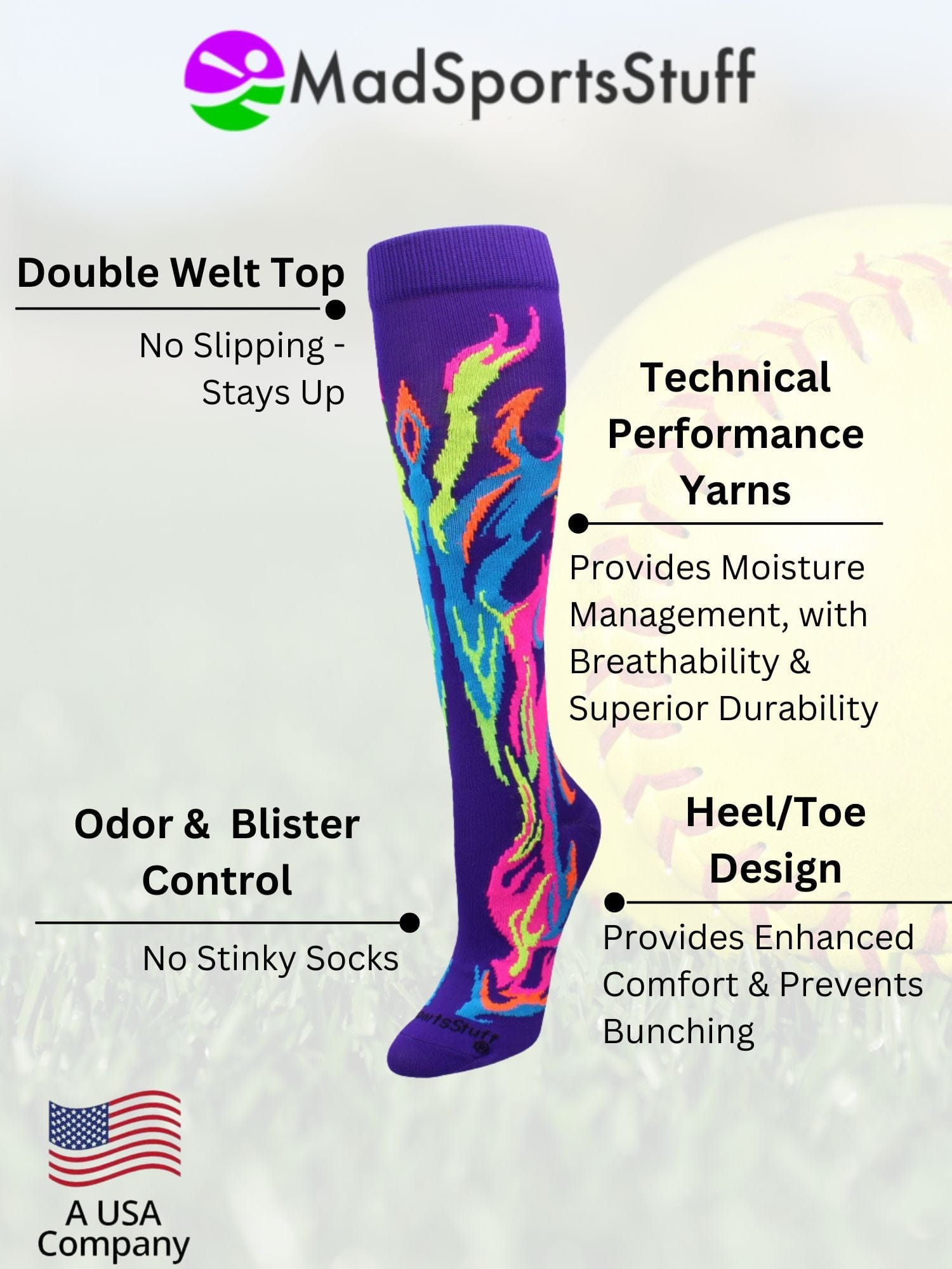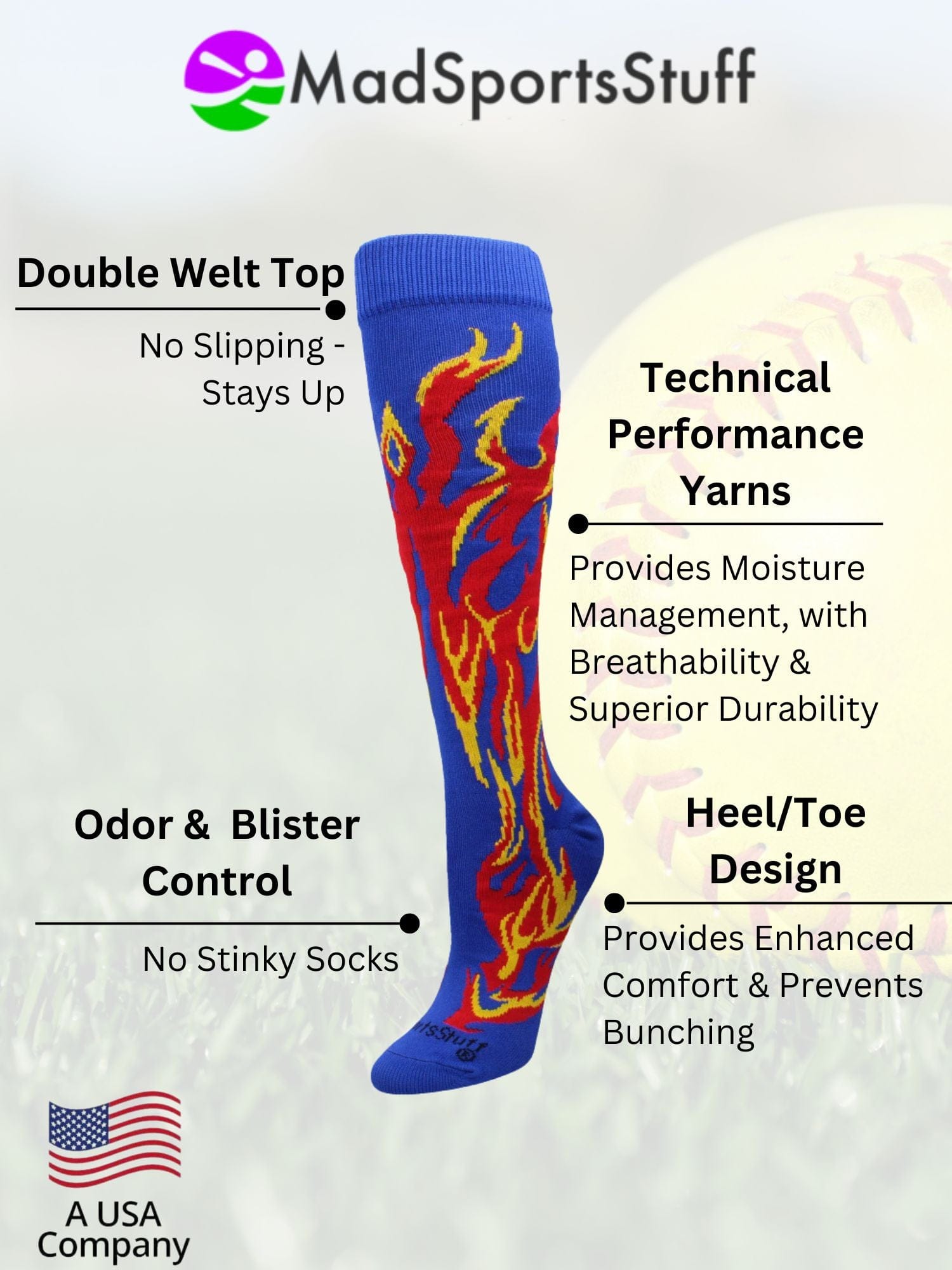 - Fiery Design for Youth Sports: Over-the-calf flame socks with bold, vibrant flames—perfect for kids who want to stand out on the field or court.