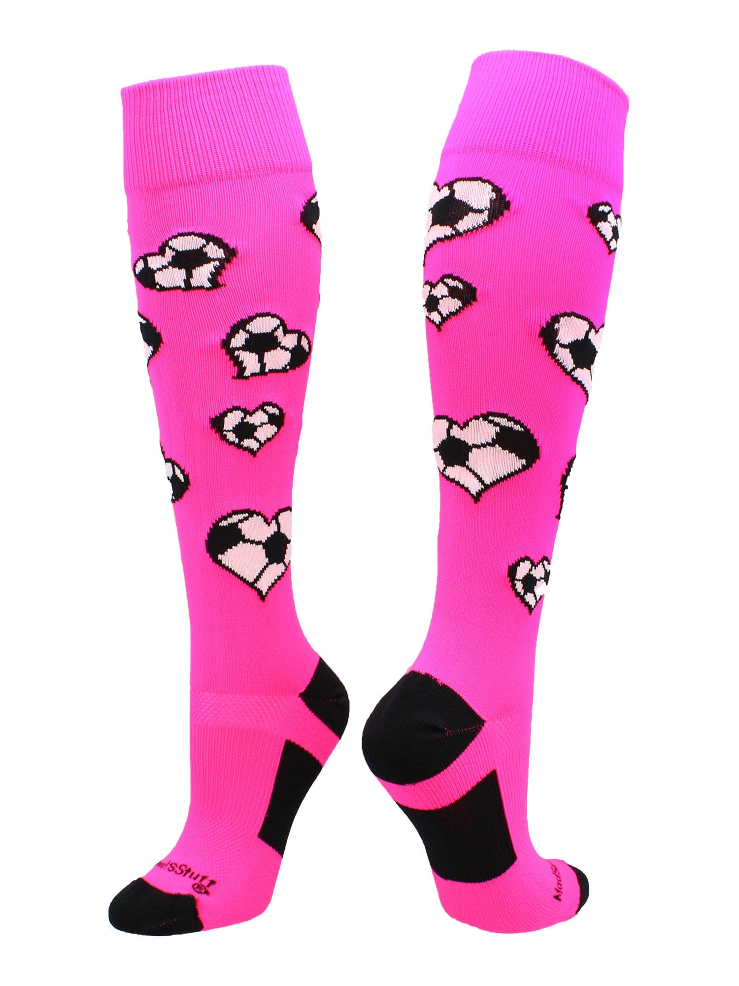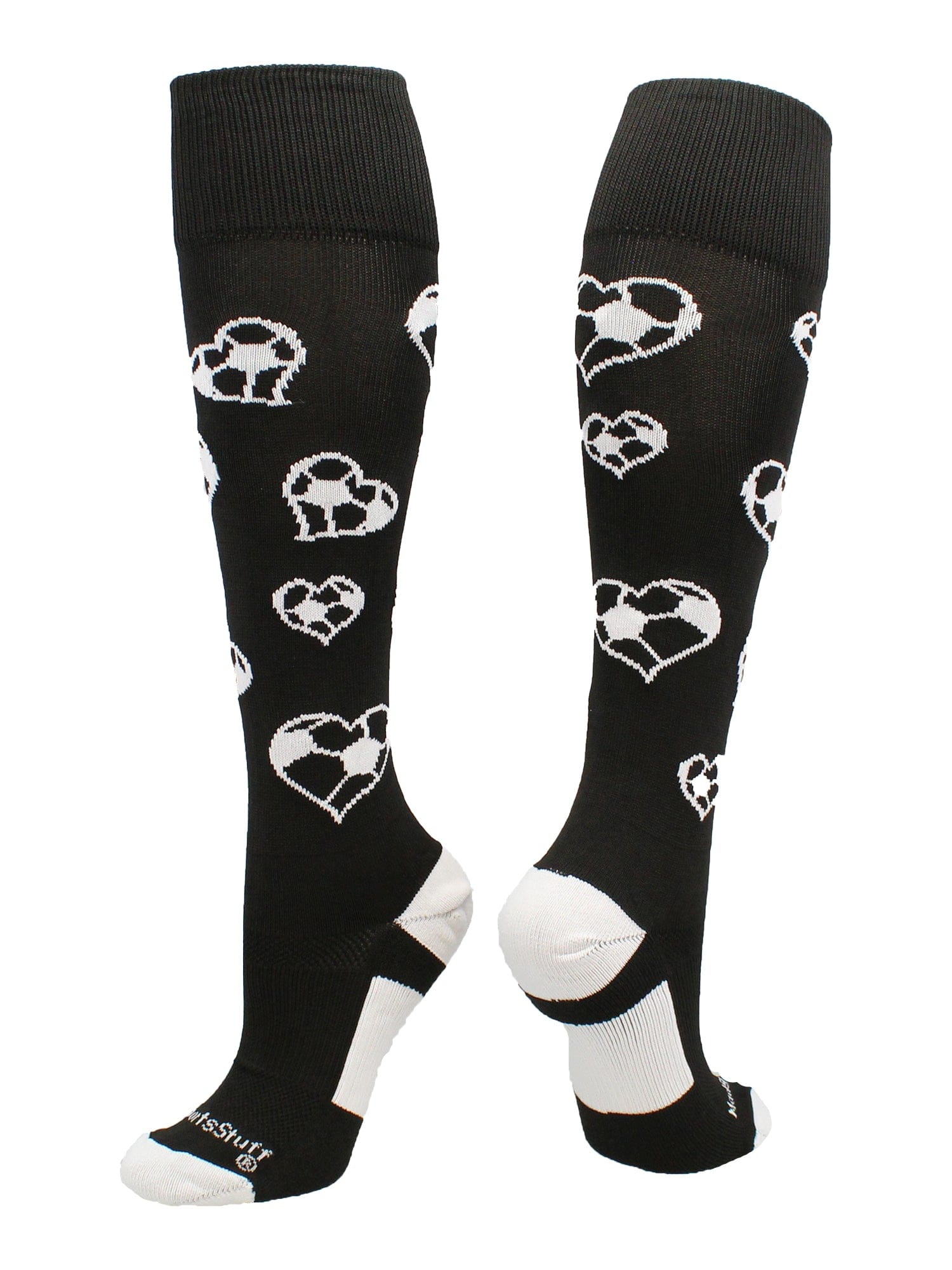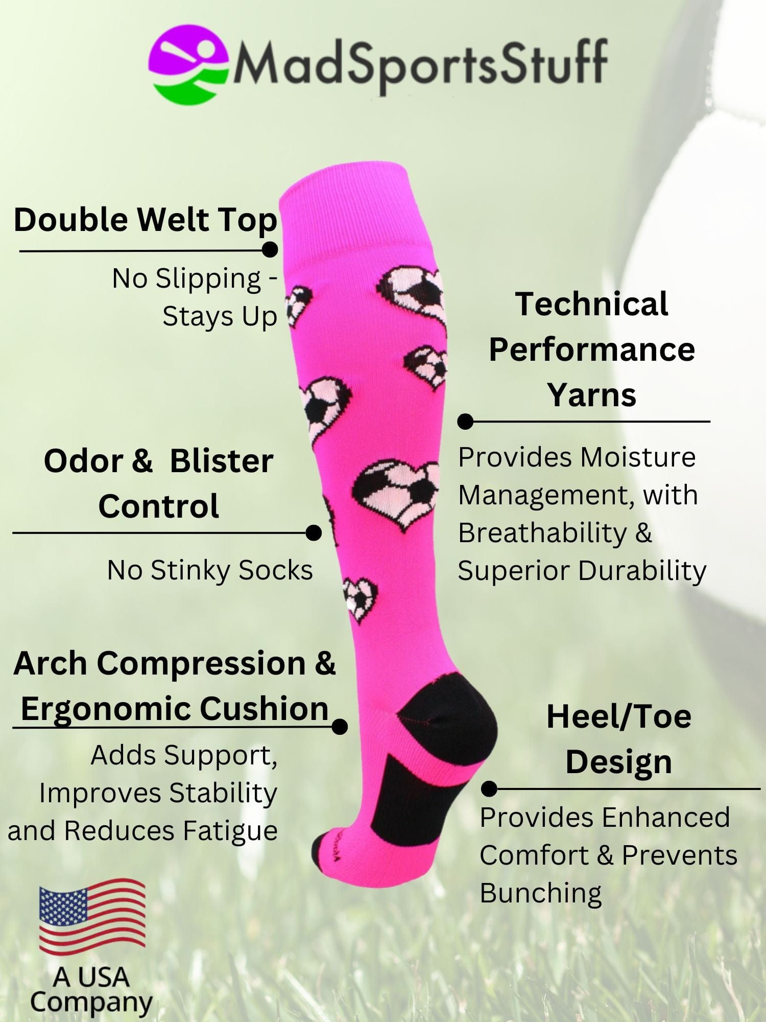 MadSportsStuff Love Soccer Hearts Socks. High performance soccer socks for boys and girls.