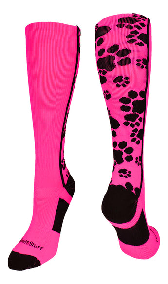 MadSportsStuff Crazy Paw Socks, Over the Calf. High performance athletic paw socks for all team sports and elite athletes. For boys or girls, teams and gifts. Ideal for softball, baseball, lacrosse, basketball, field hockey, volleyball, wrestling, soccer, football, cheer, kickball and more!