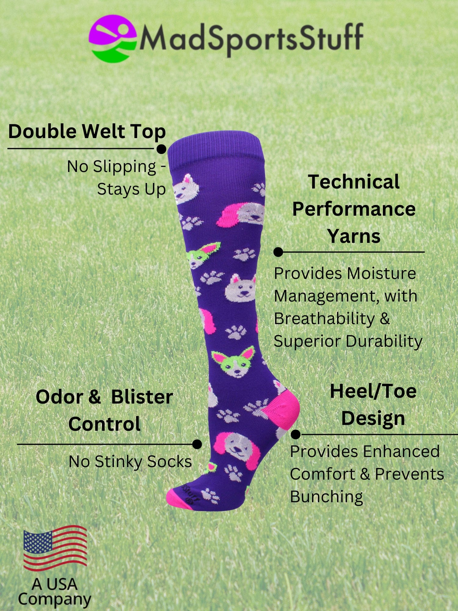 MadSportsStuff Neon Puppy Dogs Over The Calf Athletic Socks. Perfect socks for your favorite dog enthusiast! High performance athletic socks. . Ideal for softball, lacrosse, basketball, field hockey, volleyball, soccer, cheer, kickball and more!