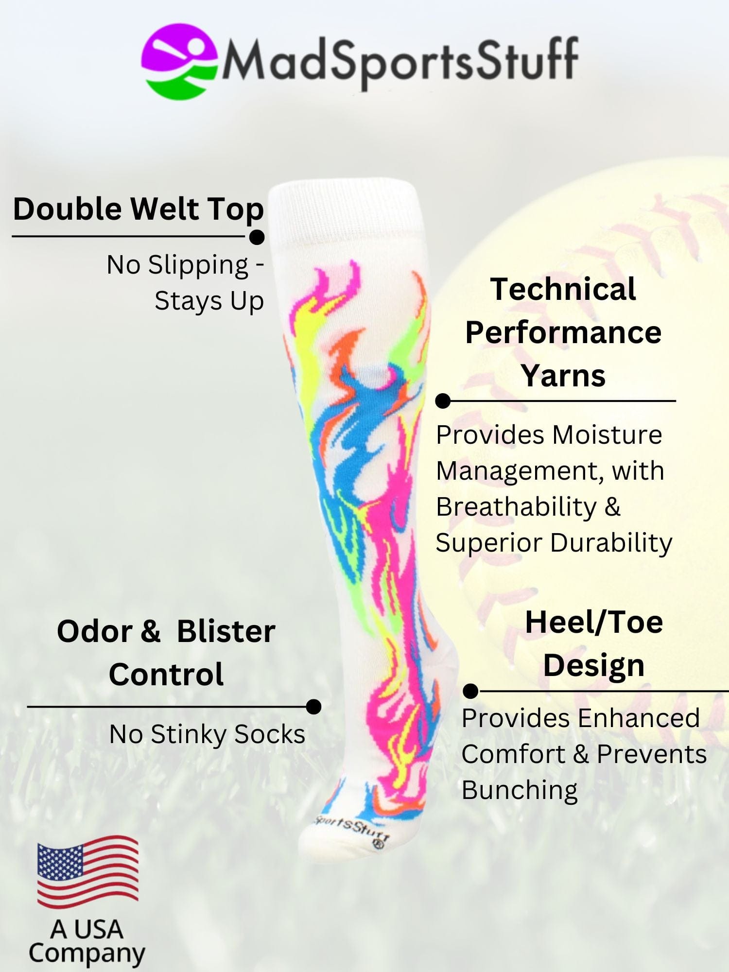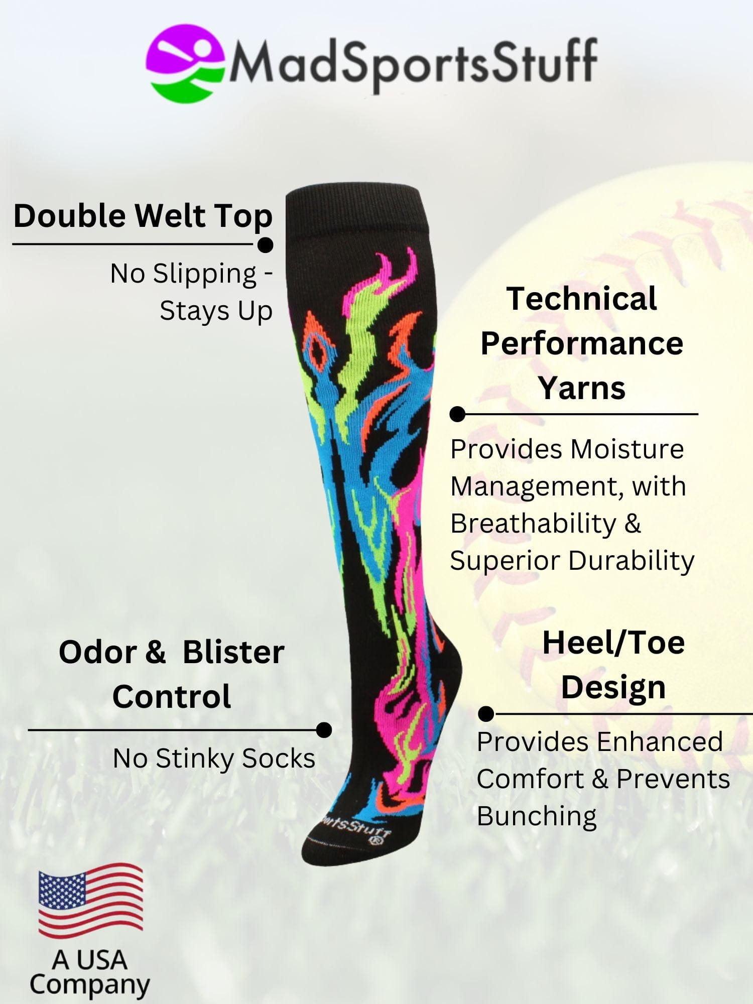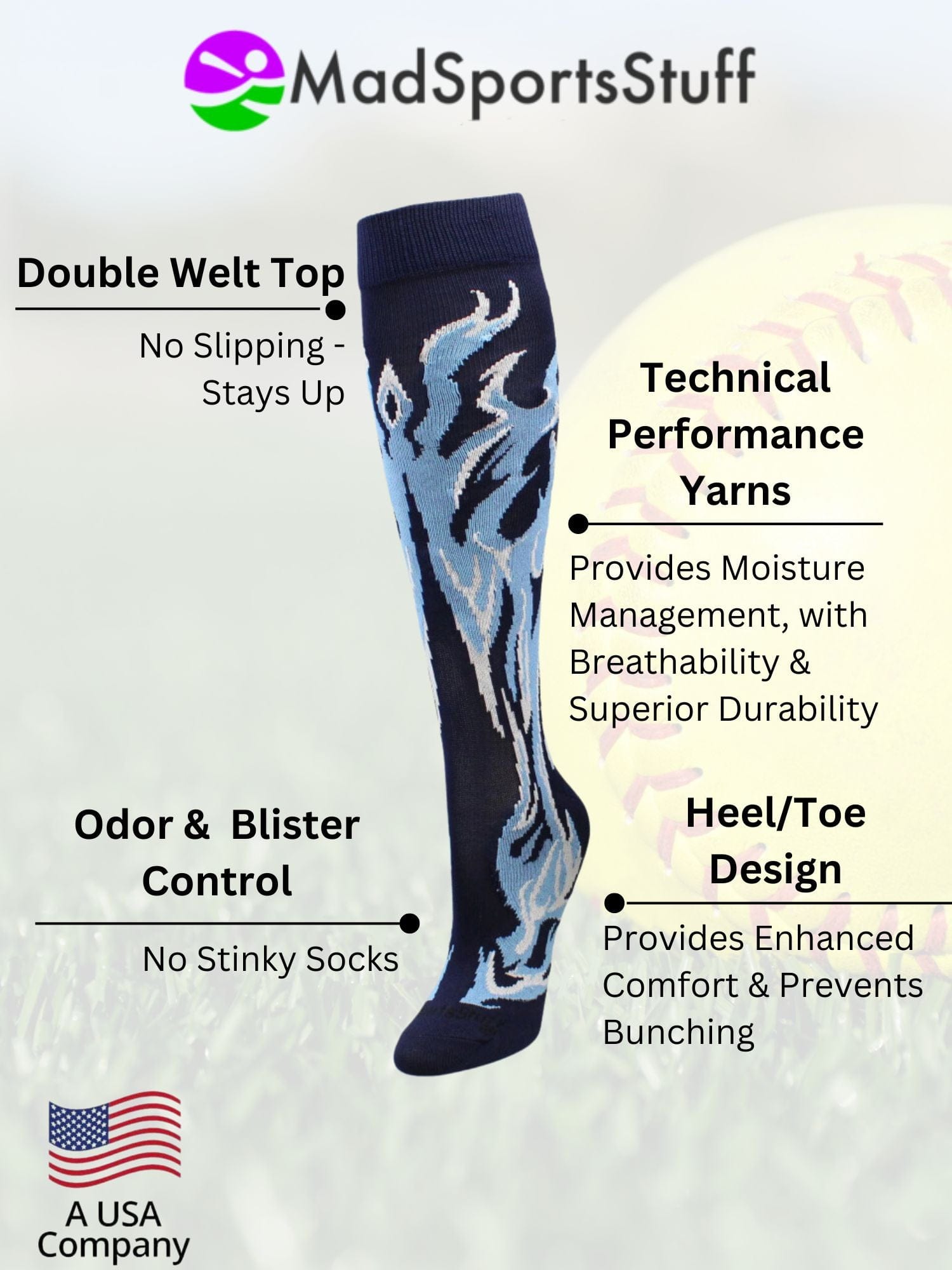 - Fiery Design for Youth Sports: Over-the-calf flame socks with bold, vibrant flames—perfect for kids who want to stand out on the field or court.