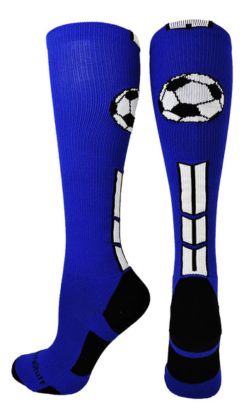 MadSportsStuff Soccer Ball Logo Over the Calf Socks. High performance athletic socks for all team sports and elite athletes. Great for boys or girls, teams and gifts.