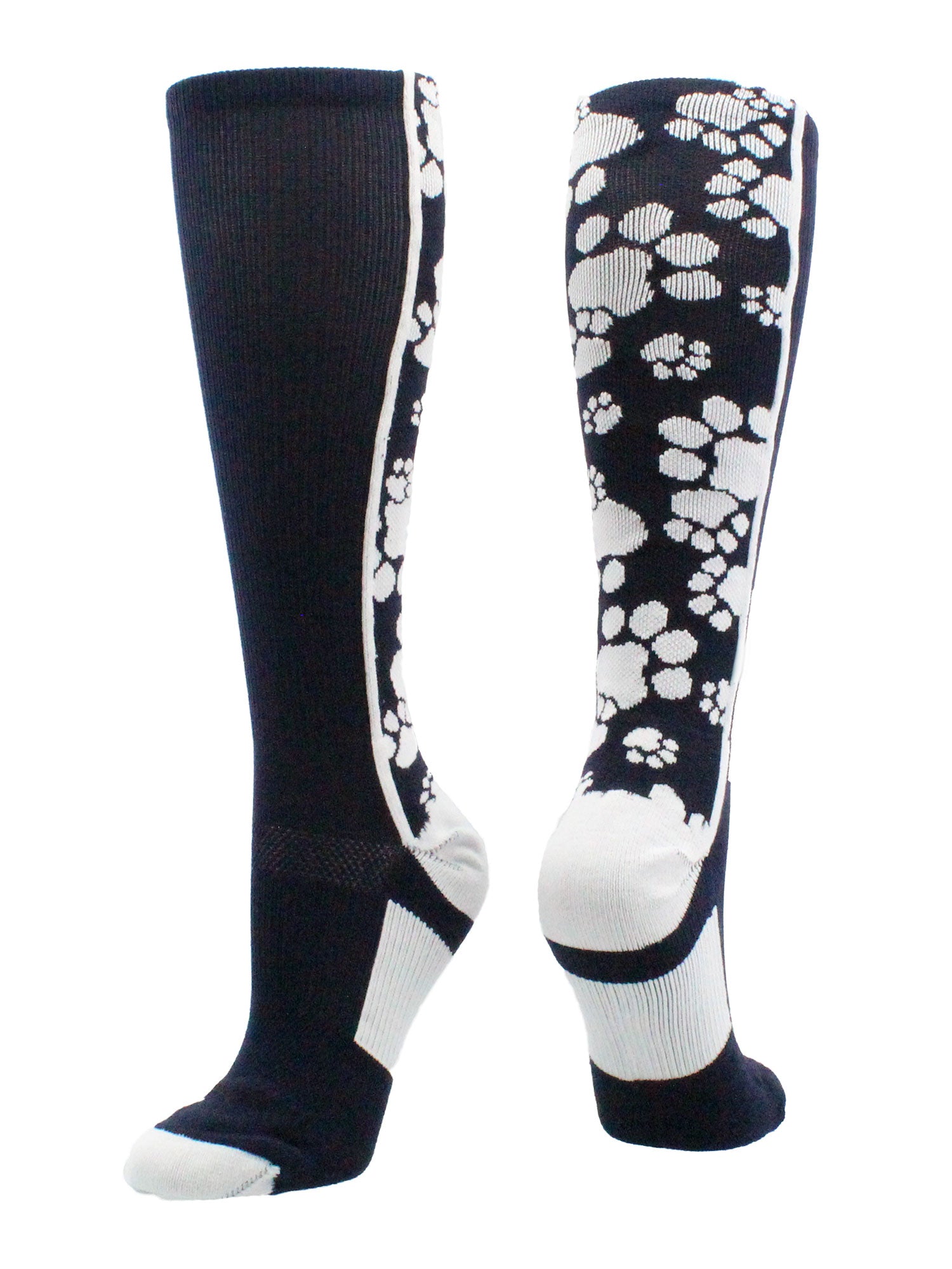 MadSportsStuff Crazy Paw Socks, Over the Calf. High performance athletic paw socks for all team sports and elite athletes. For boys or girls, teams and gifts. Ideal for softball, baseball, lacrosse, basketball, field hockey, volleyball, wrestling, soccer, football, cheer, kickball and more!