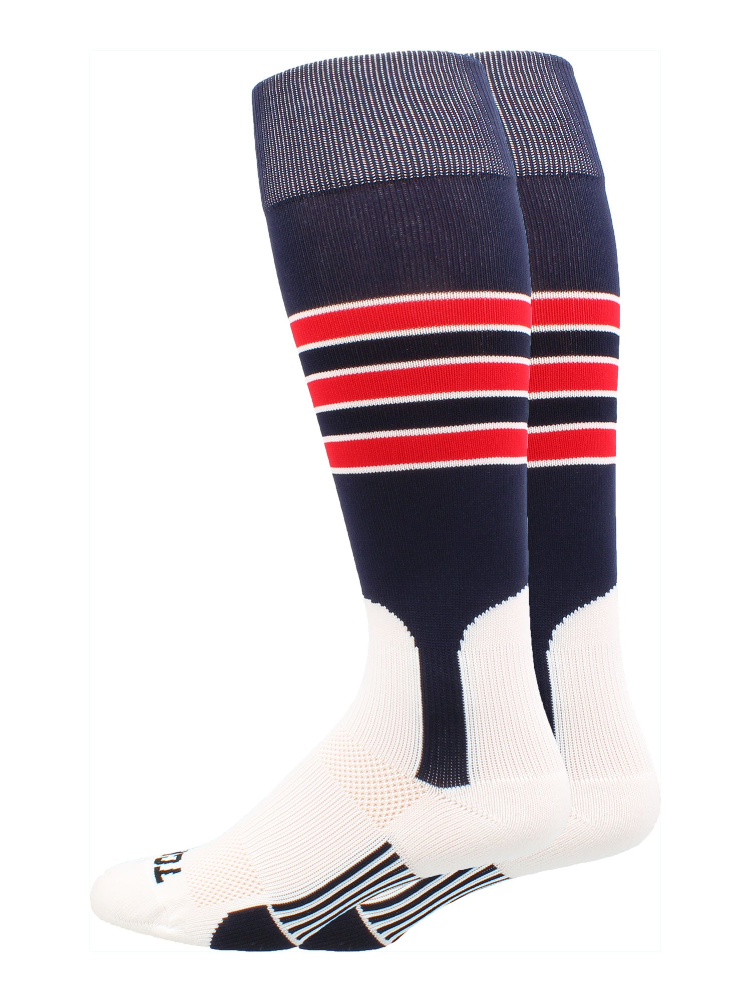 - PERFECT SOFTBALL or BASEBALL STIRRUP SOCKS: MadSportsStuff created world class baseball stirrup socks in a classic 3 stripe design with a featheredge. These stirrup socks have a stirrup design knit into an athletic sock giving you the look of a 7 inch cut stirrup without the hassle of a sanitary sock underneath. These stirrup socks are offered in classic team colors and are sure to be a hit with your favorite baseball or softball player!