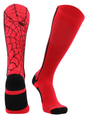 - PERFECT SPORTS SOCKS: Your superhero loving kid will own the field in these creepy-crawly over the calf spider socks. Featuring a web with a spider on the back half of the sock, the front of the sock is left simple, as to allow a bit more stretch to easily accommodate thin shin guards. Ideal for softball, baseball, lacrosse, basketball, wrestling, soccer, football, kickball and more!