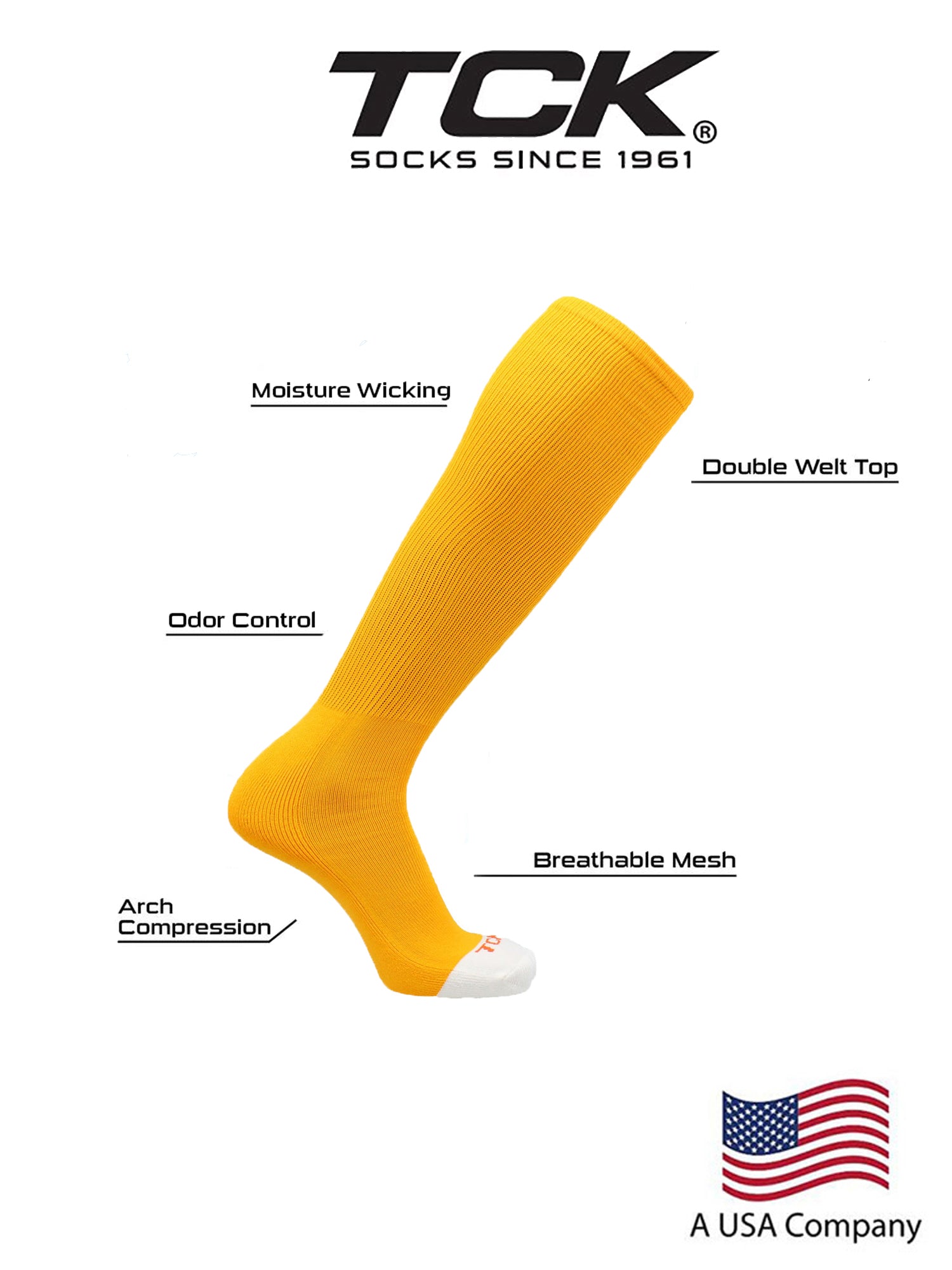 Our TCK Prosport OTC socks are a must have for your next game, outing, or practice. Designed by the leaders in team athletic socks, the Prosport is the ideal weight and length for athletes, while it also provides maximum performance and durability. TCK was founded in 1961 in North Carolina, where we still operate today. When purchasing TCK products, you can feel proud to support a USA based company that directly supports American employees.