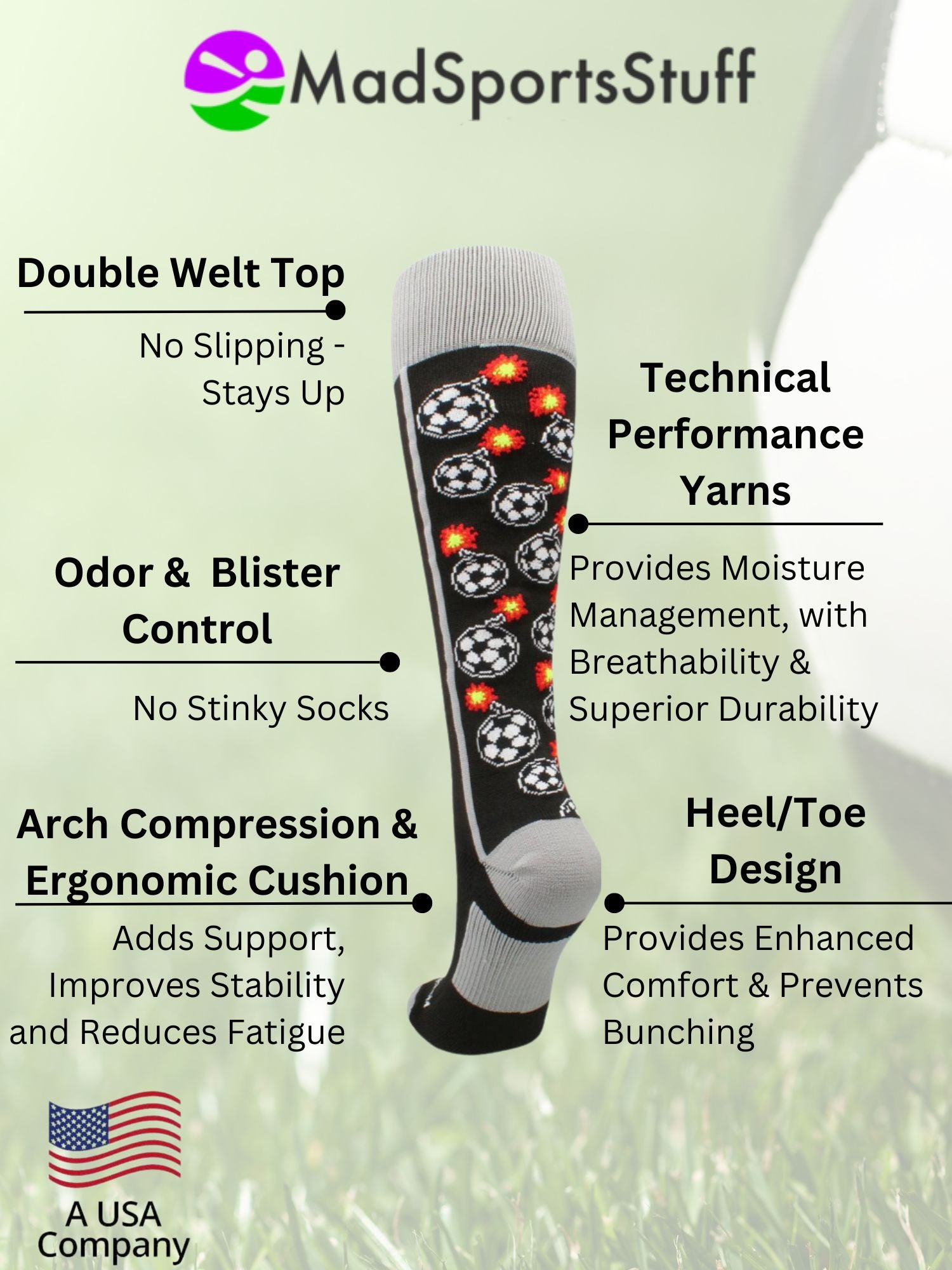 • QUALITY CONSTRUCTION: These Bomber Soccer Socks are made with love in the USA