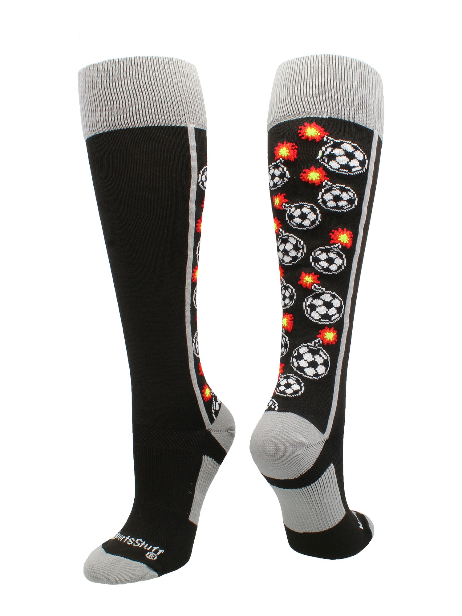 • PERFECT SOCCER SOCKS: These soccer socks have soccer balls shaped as bombs, lit up, in an over the calf length. Great for teams such as Bombers Soccer, Soccer Bombers, Soccer Bombs, Firecrackers, or for some super fun, crazy socks to light up the field.