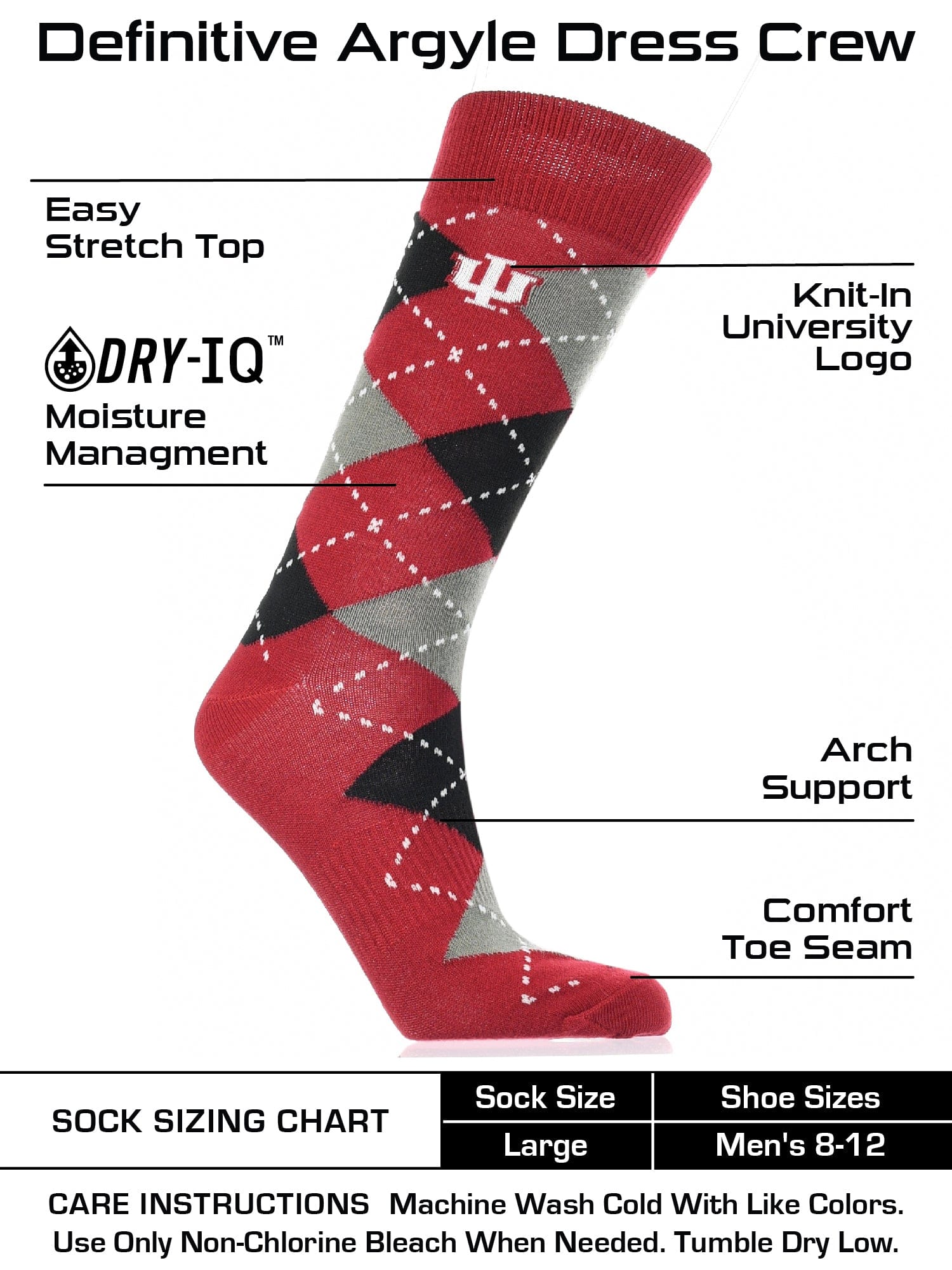 - COMFORT AND BREATHABILITY: These premium quality Indiana Hoosiers argyle dress socks provide soft comfort. Moisture management technology pulls moisture and sweat away from skin.