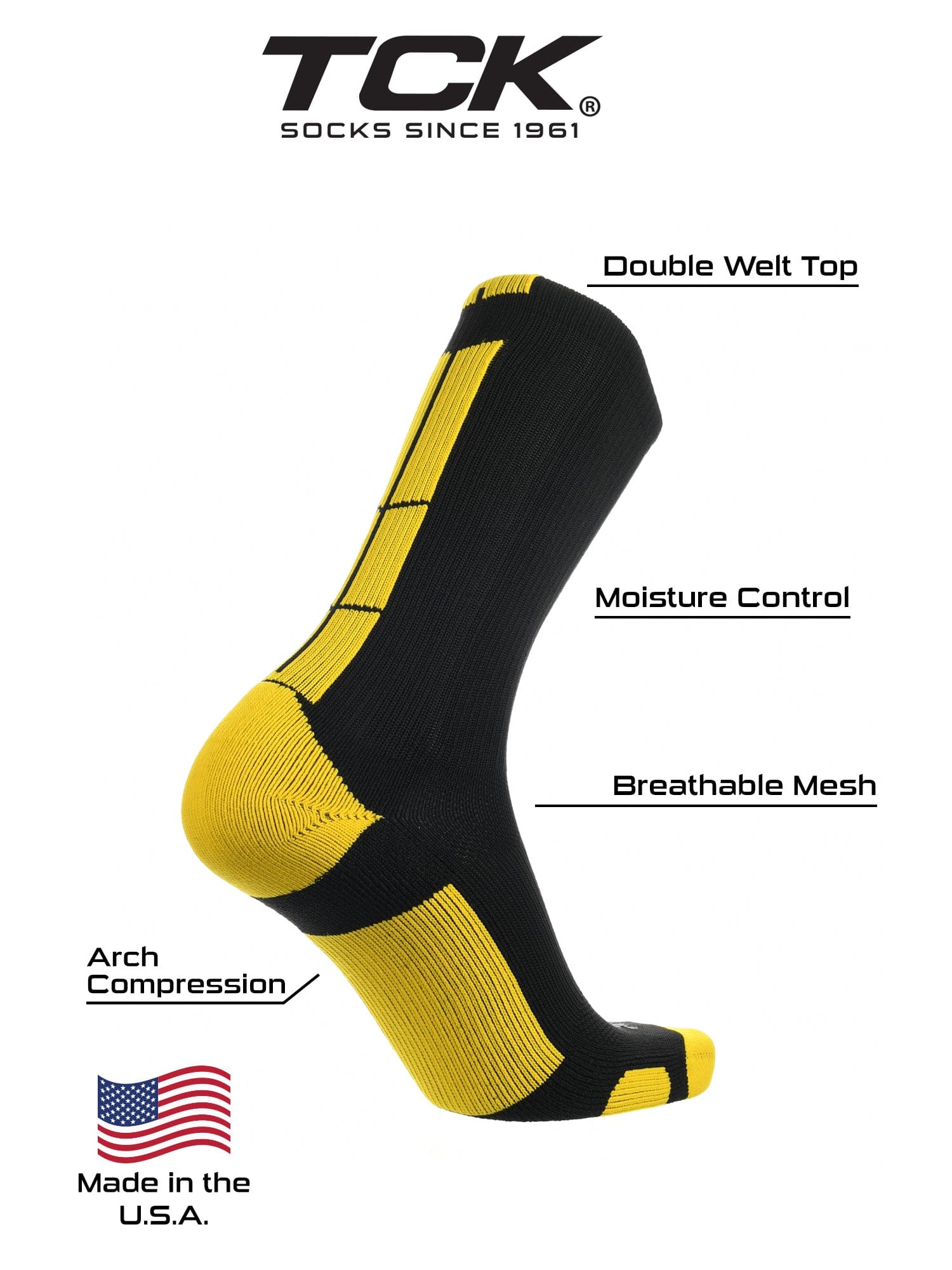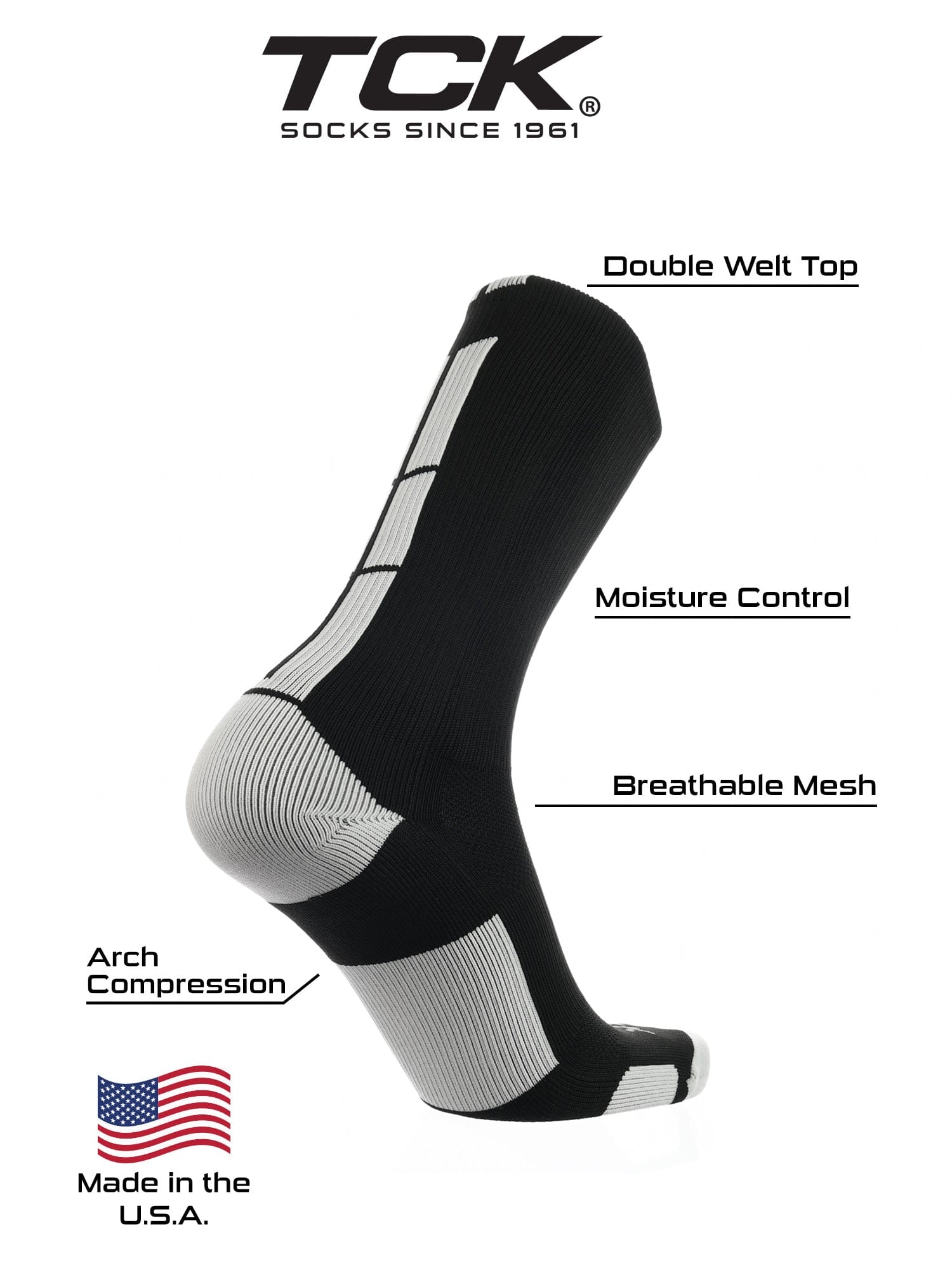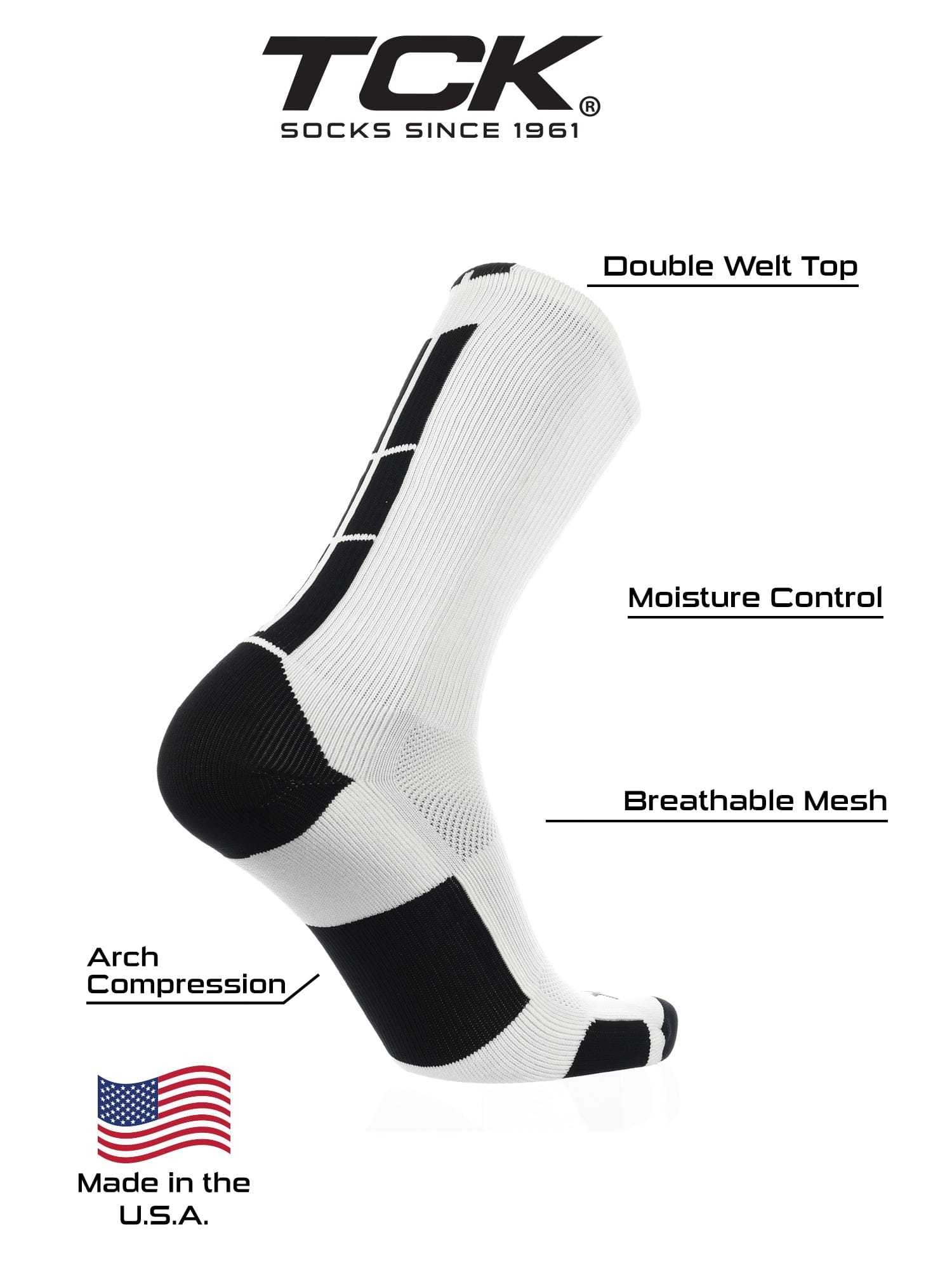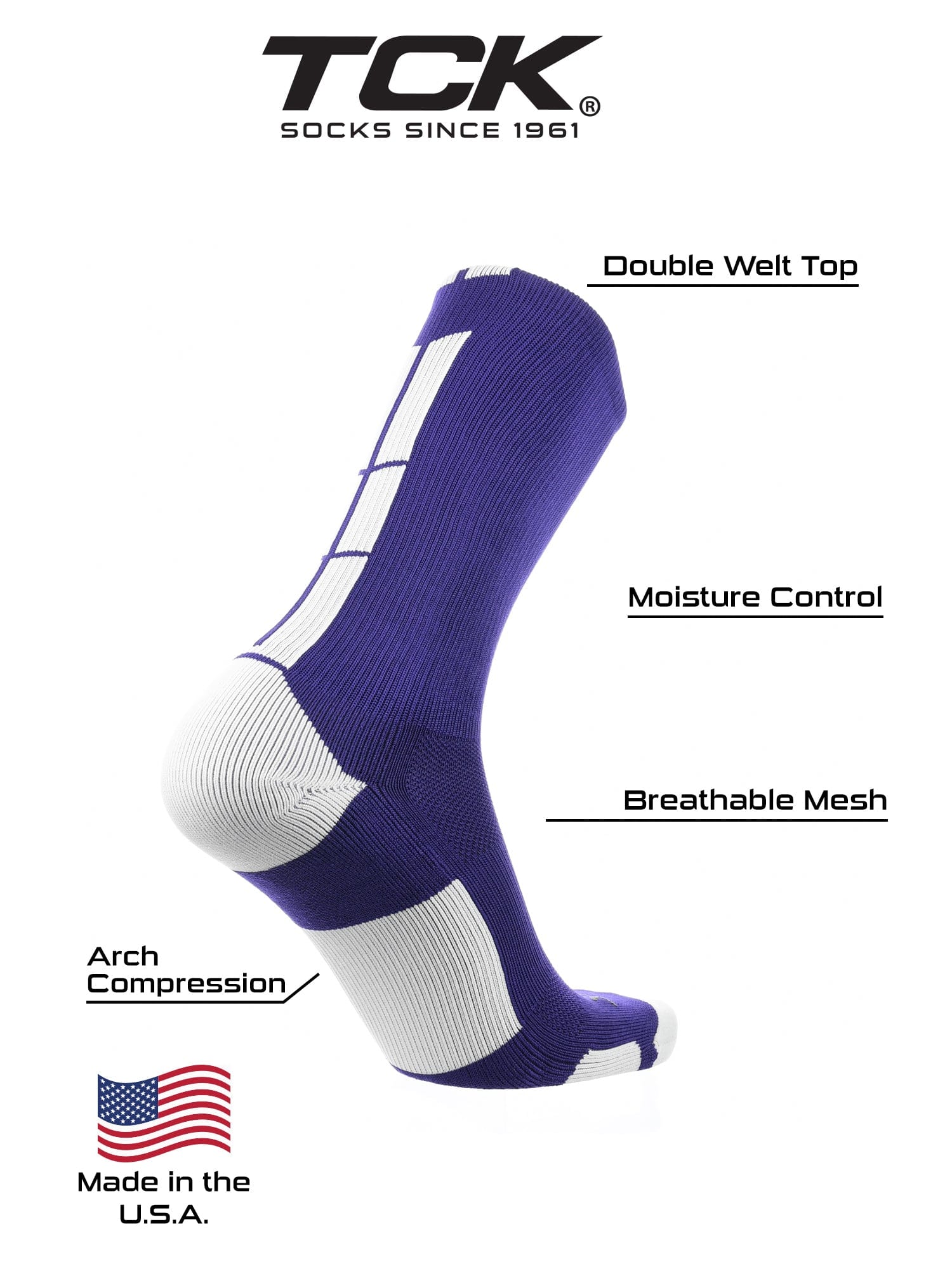 • USA Company, Trusted Quality: TCK Sports has been designing high-performance sports socks in North Carolina since 1961. As a proud USA-based company with over 60 years of experience, we’re passionate about creating premium athletic socks and supporting American jobs, so you can feel good about every pair you wear.