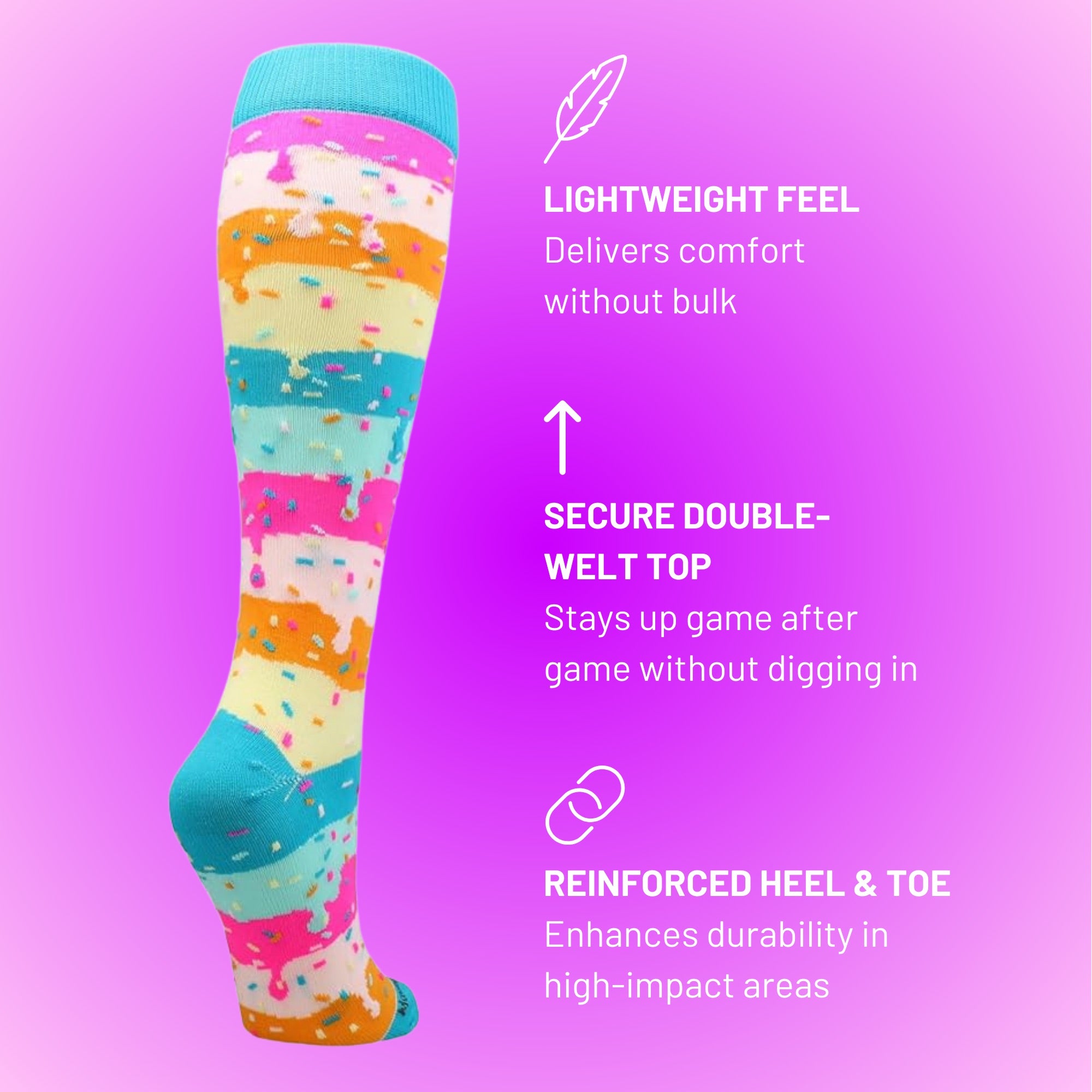 - FUN & FUNCTIONAL: These Rainbow Sprinkle Socks are perfect for adding a pop of color to any outfit—whether you're dressing up for a themed event, showing team spirit, or just having fun. Great for casual wear, costumes, school activities, and a wide range of sports and recreational activities. Ideal for boys, girls, teens, and teams!