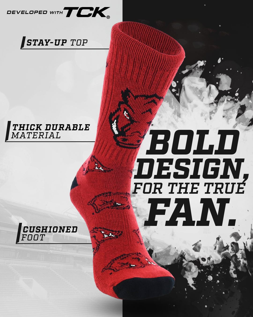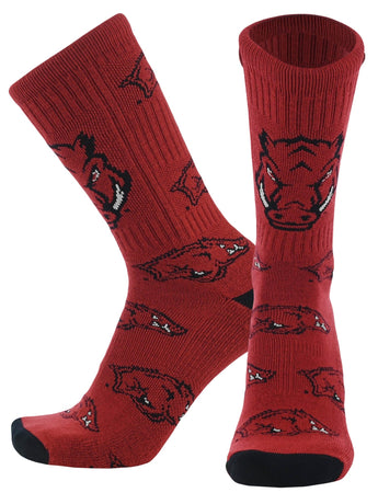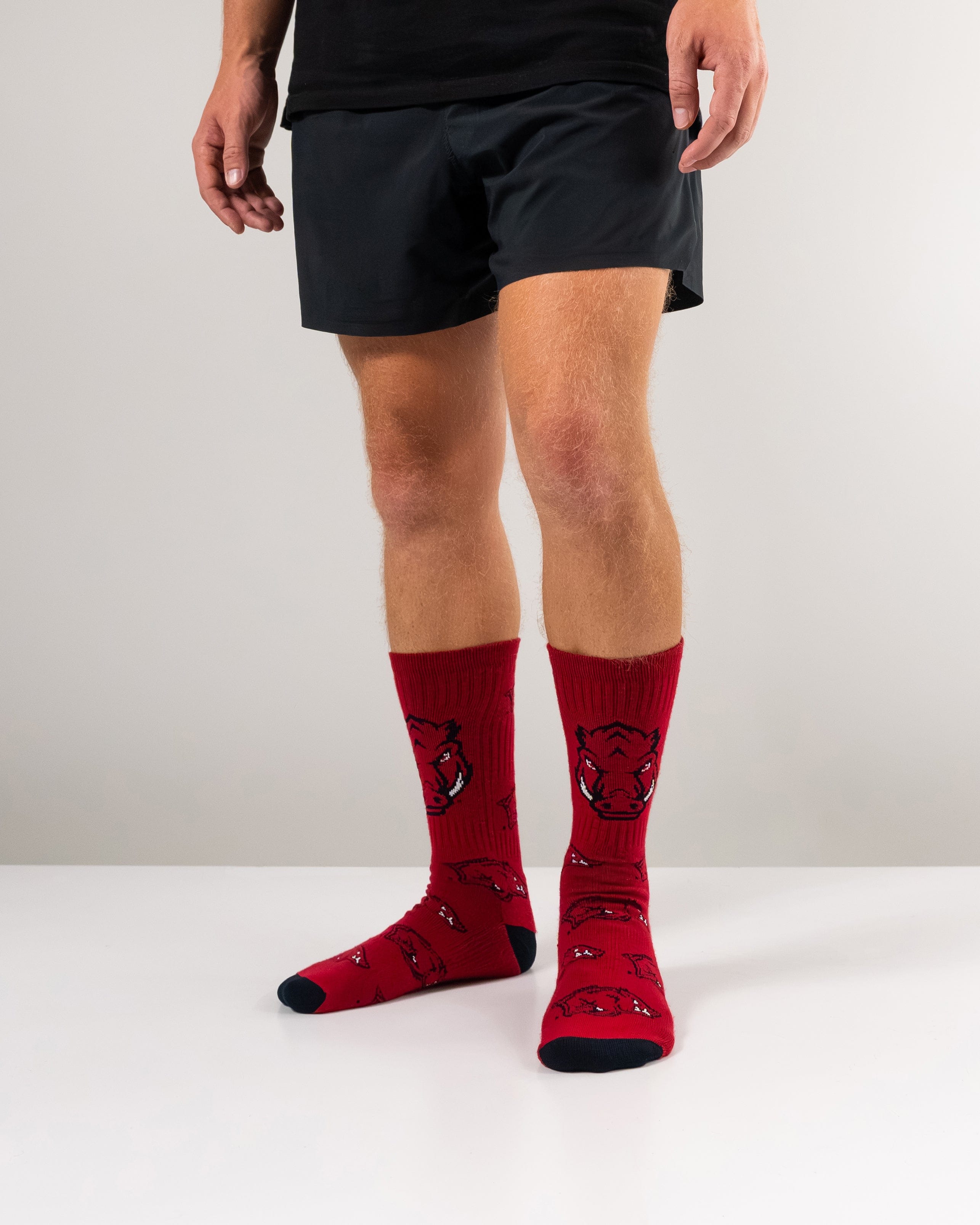 Step into the Mayhem and show off your Razorbacks pride with socks built for both spirit and performance. Whether you're hitting the gym or heading to class, these versatile socks pair perfectly with sneakers or slides. Designed for comfort, breathability, and durability, they make a great gift for Father’s Day, birthdays, back-to-school, or stocking stuffers. Made from a high-quality blend of 94% Polyester, 4% Rubber, and 2% Spandex. Woo Pig!