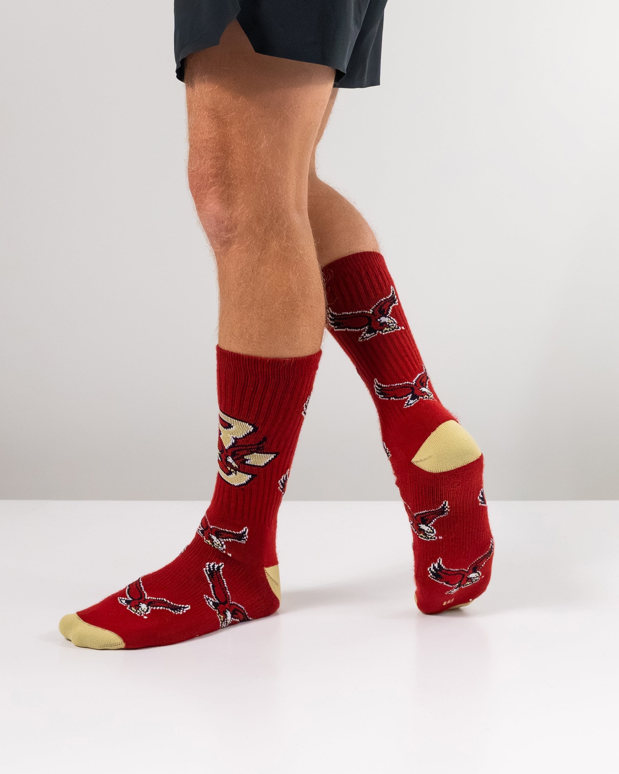 Step into the Mayhem and show off your Eagles pride with socks built for both spirit and performance. Whether you're hitting the gym or heading to class, these versatile socks pair perfectly with sneakers or slides. Designed for comfort, breathability, and durability, they make a great gift for Father’s Day, birthdays, back-to-school, or stocking stuffers. Made from a high-quality blend of 94% Polyester, 4% Rubber, and 2% Spandex. Let's Go Eagles!