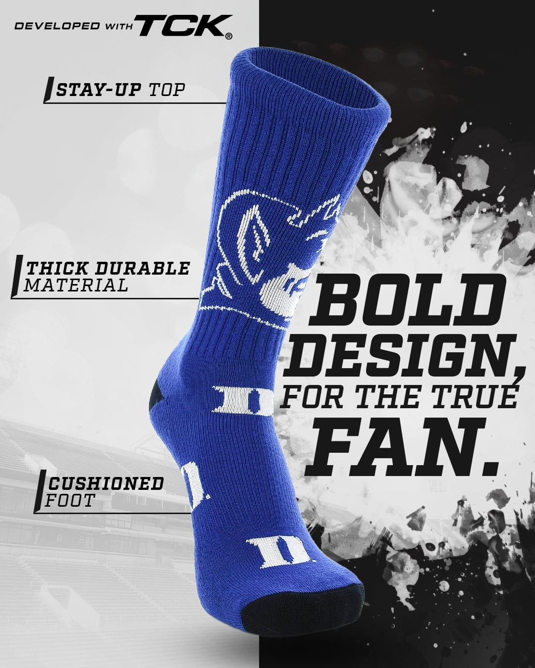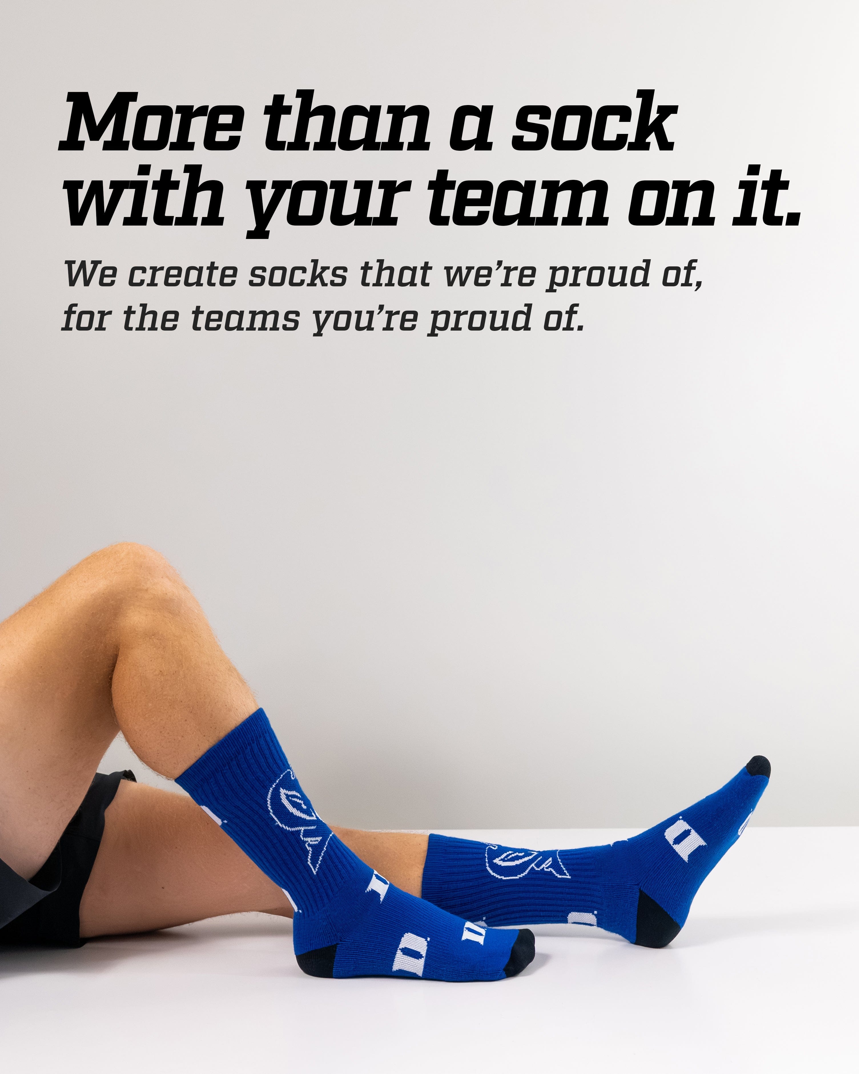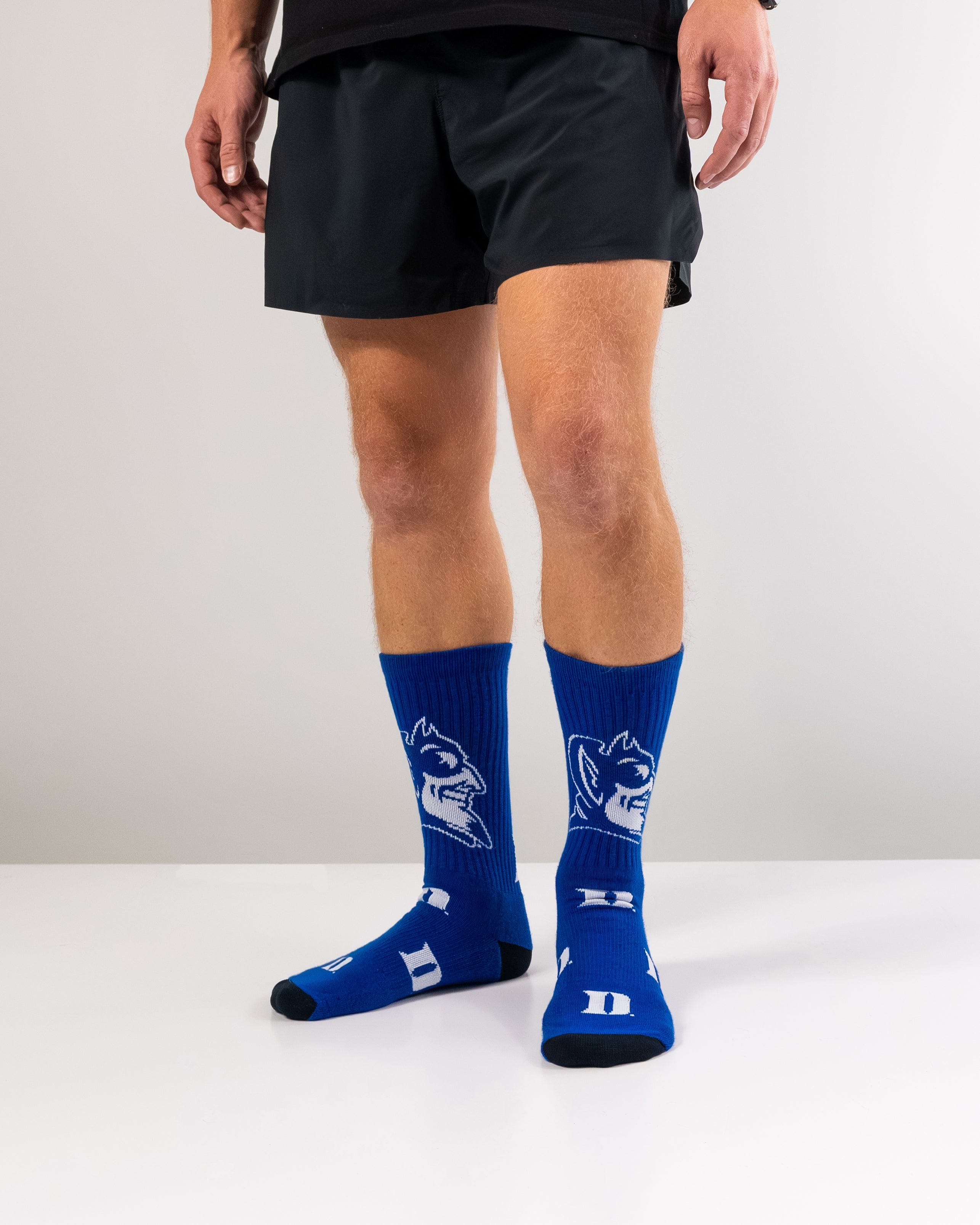 Step into the Mayhem and show off your Blue Devils pride with socks built for both spirit and performance. Whether you're hitting the gym or heading to class, these versatile socks pair perfectly with sneakers or slides. Designed for comfort, breathability, and durability, they make a great gift for Father’s Day, birthdays, back-to-school, or stocking stuffers. Made from a high-quality blend of 94% Polyester, 4% Rubber, and 2% Spandex. Let's go Duke!