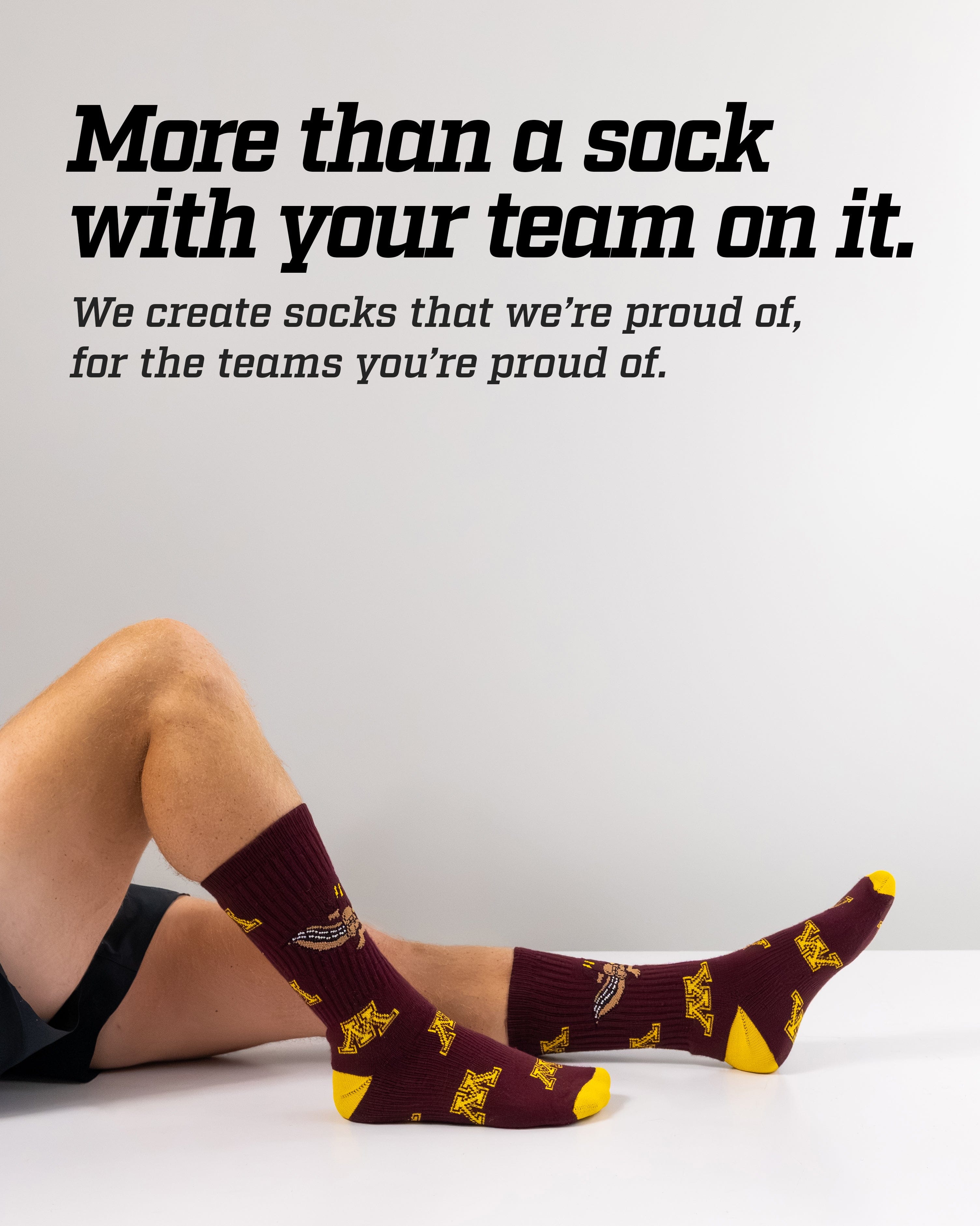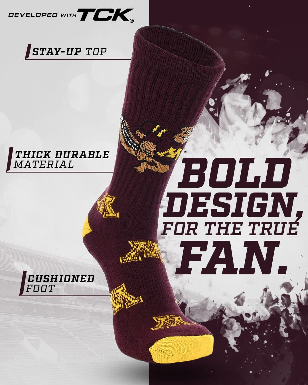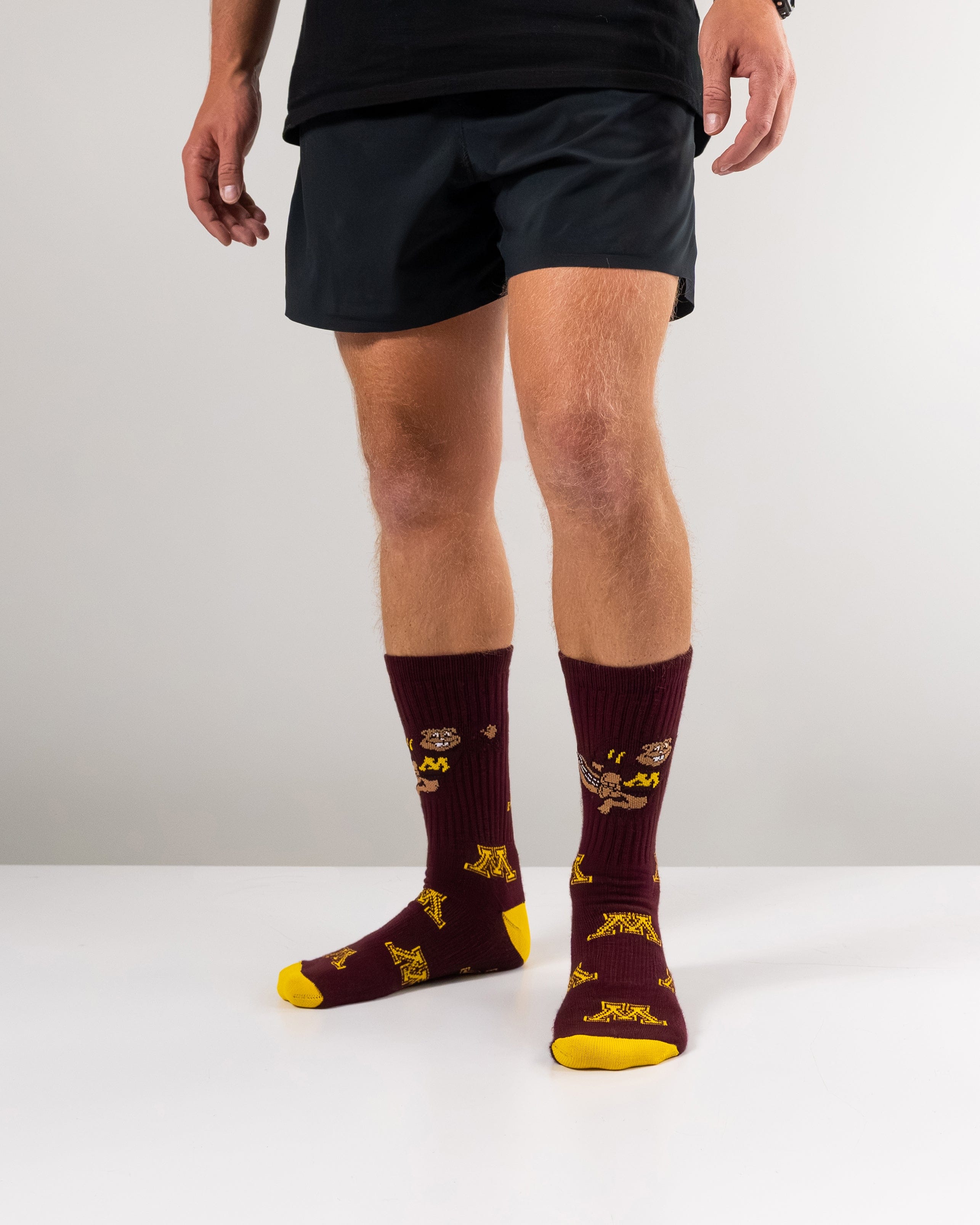Step into the Mayhem and show off your Gophers pride with socks built for both spirit and performance. Whether you're hitting the gym or heading to class, these versatile socks pair perfectly with sneakers or slides. Designed for comfort, breathability, and durability, they make a great gift for Father’s Day, birthdays, back-to-school, or stocking stuffers. Made from a high-quality blend of 94% Polyester, 4% Rubber, and 2% Spandex. Ski-U-Mah!