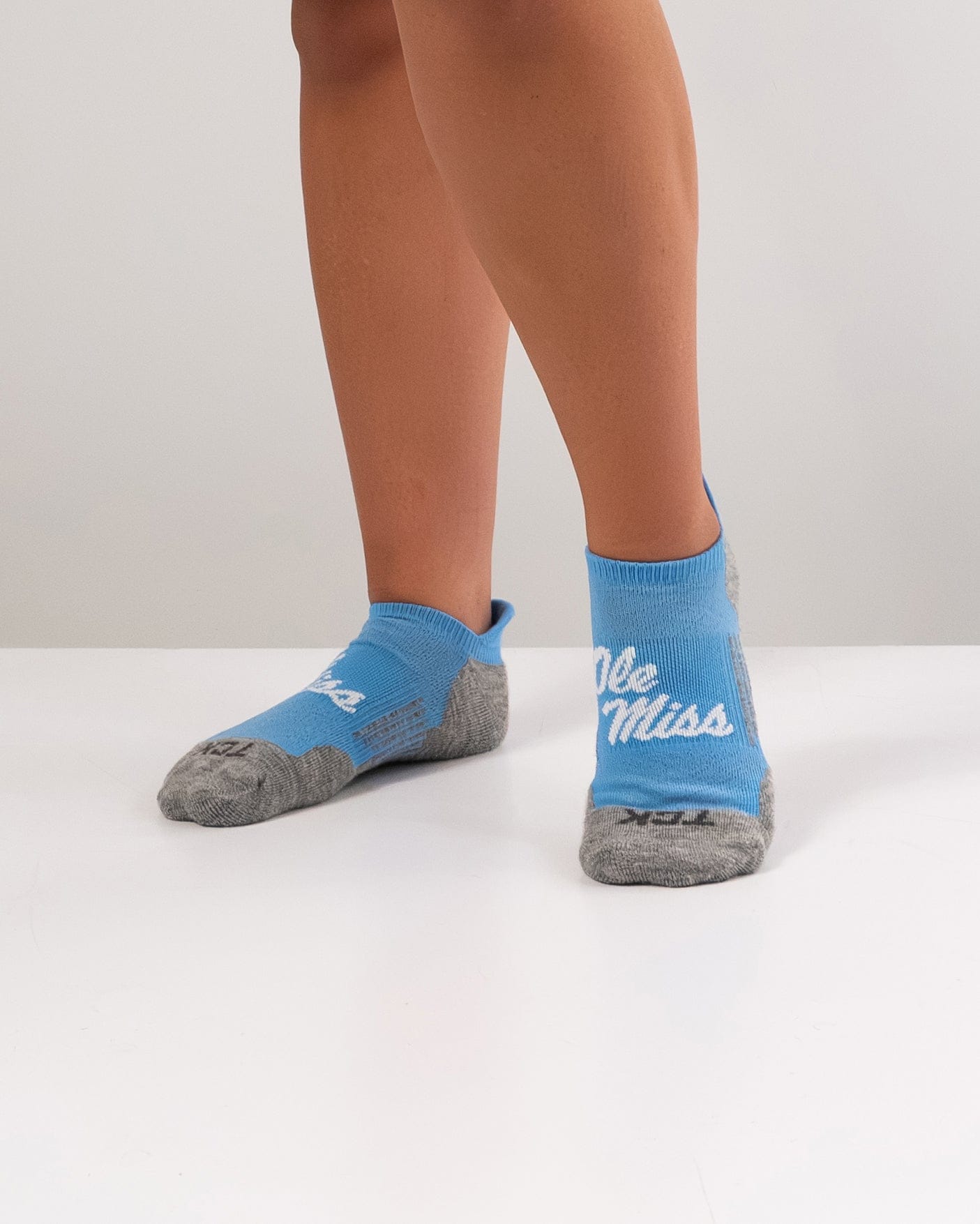 Step up your sock game with TCK's Ole Miss Rebels no show socks, high performance NCAA sock made in the USA. Designed for sneakerheads, golfers, runners, and fans alike, these socks feature a soft merino wool footbed, breathable mesh upper, arch support, and a smooth toe seam. The heel tab protects without showing. Perfect for all-day comfort, year-round wear, and gifting for birthdays, Father's Day, grads, or Christmas.