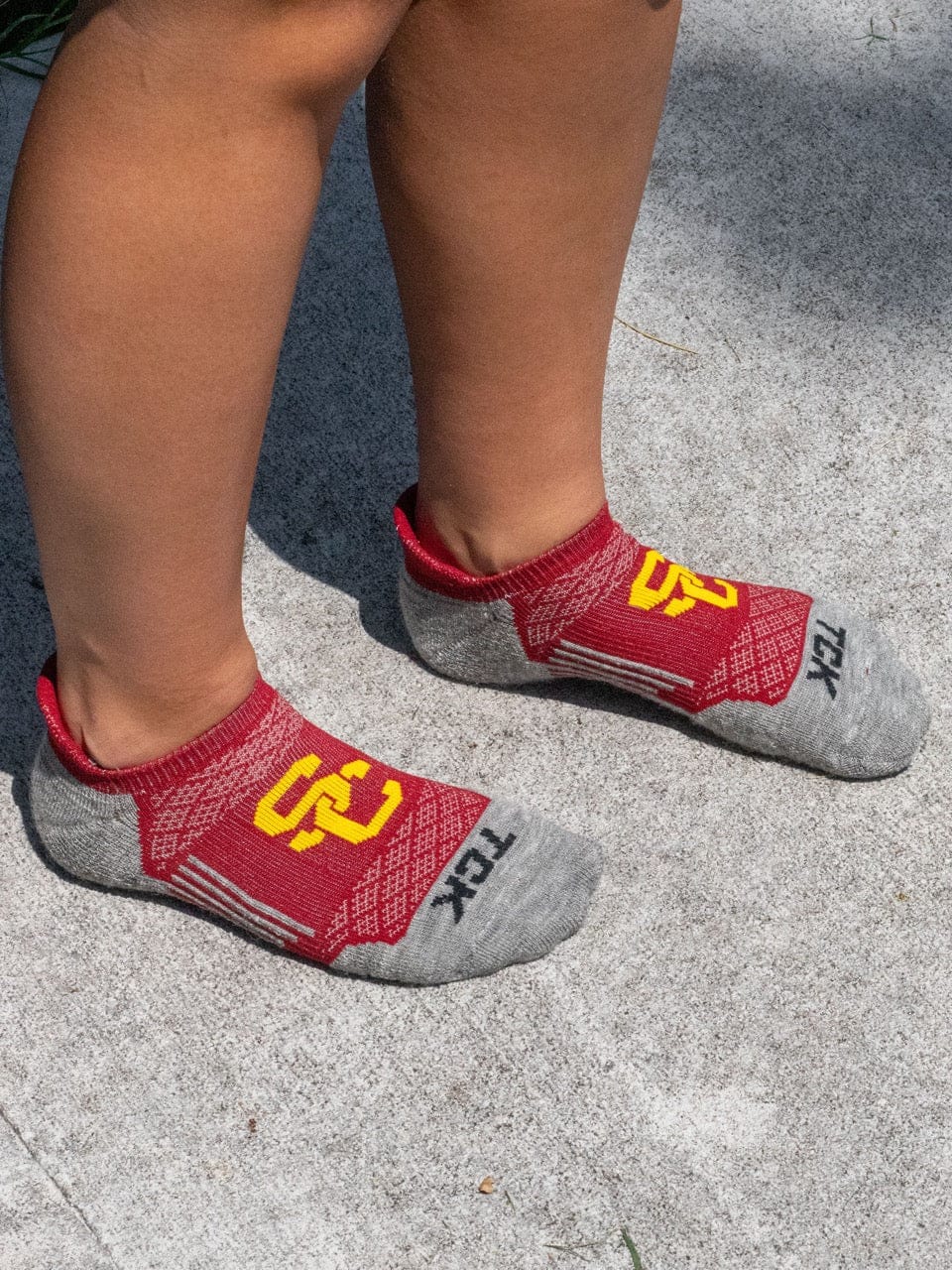 Step up your sock game with TCK's USC Trojans no show socks, high performance NCAA sock made in the USA. Designed for sneakerheads, golfers, runners, and fans alike, these socks feature a soft merino wool footbed, breathable mesh upper, arch support, and a smooth toe seam. The heel tab protects without showing. Perfect for all-day comfort, year-round wear, and gifting for birthdays, Father's Day, grads, or Christmas.