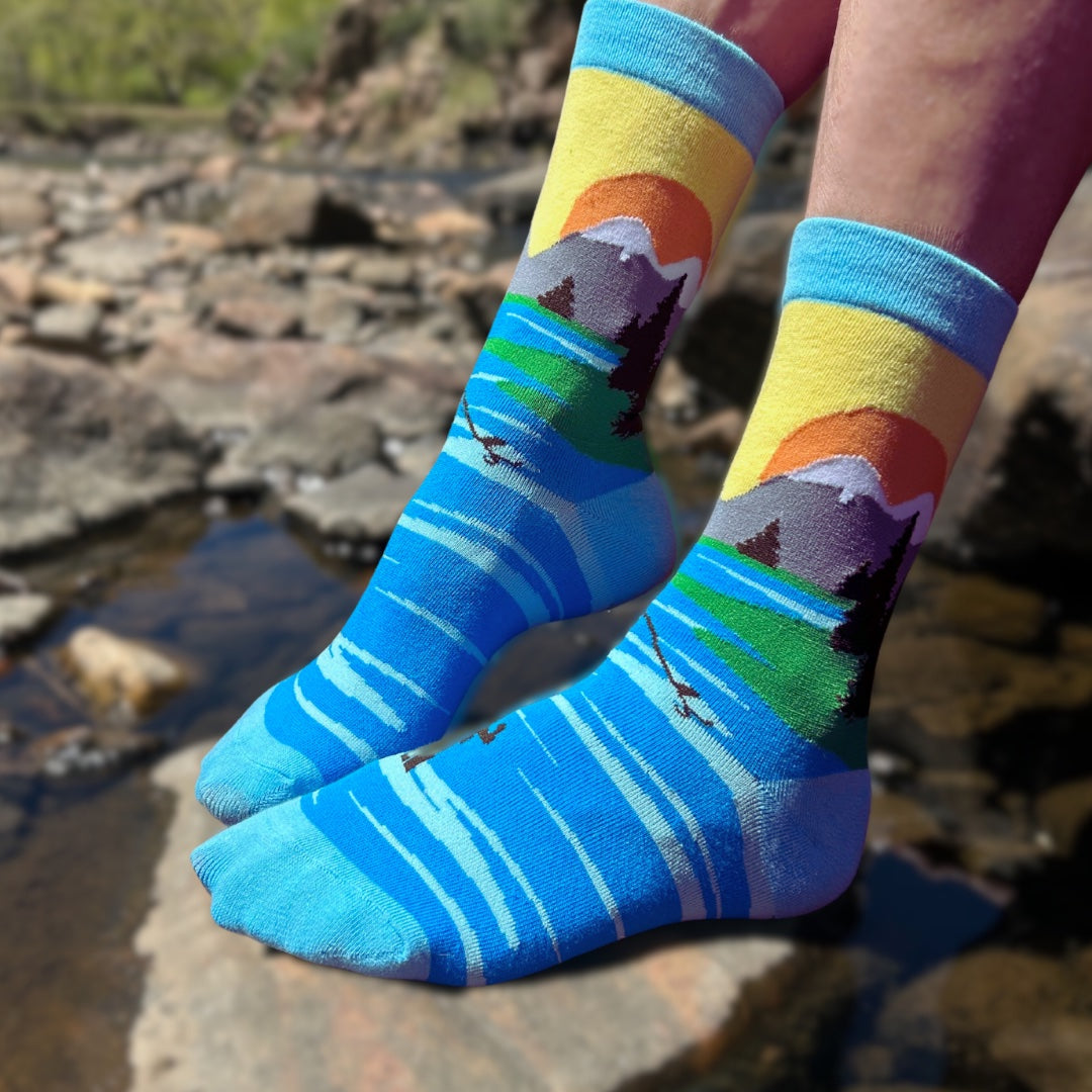 - THE PERFECT GIFT IDEA – Searching for a thoughtful, outdoors-inspired gift? These socks make a meaningful present for birthdays, holidays, or any special occasion. Ideal for men, women, and anyone who enjoys fishing, rivers, or peaceful outdoor adventures.