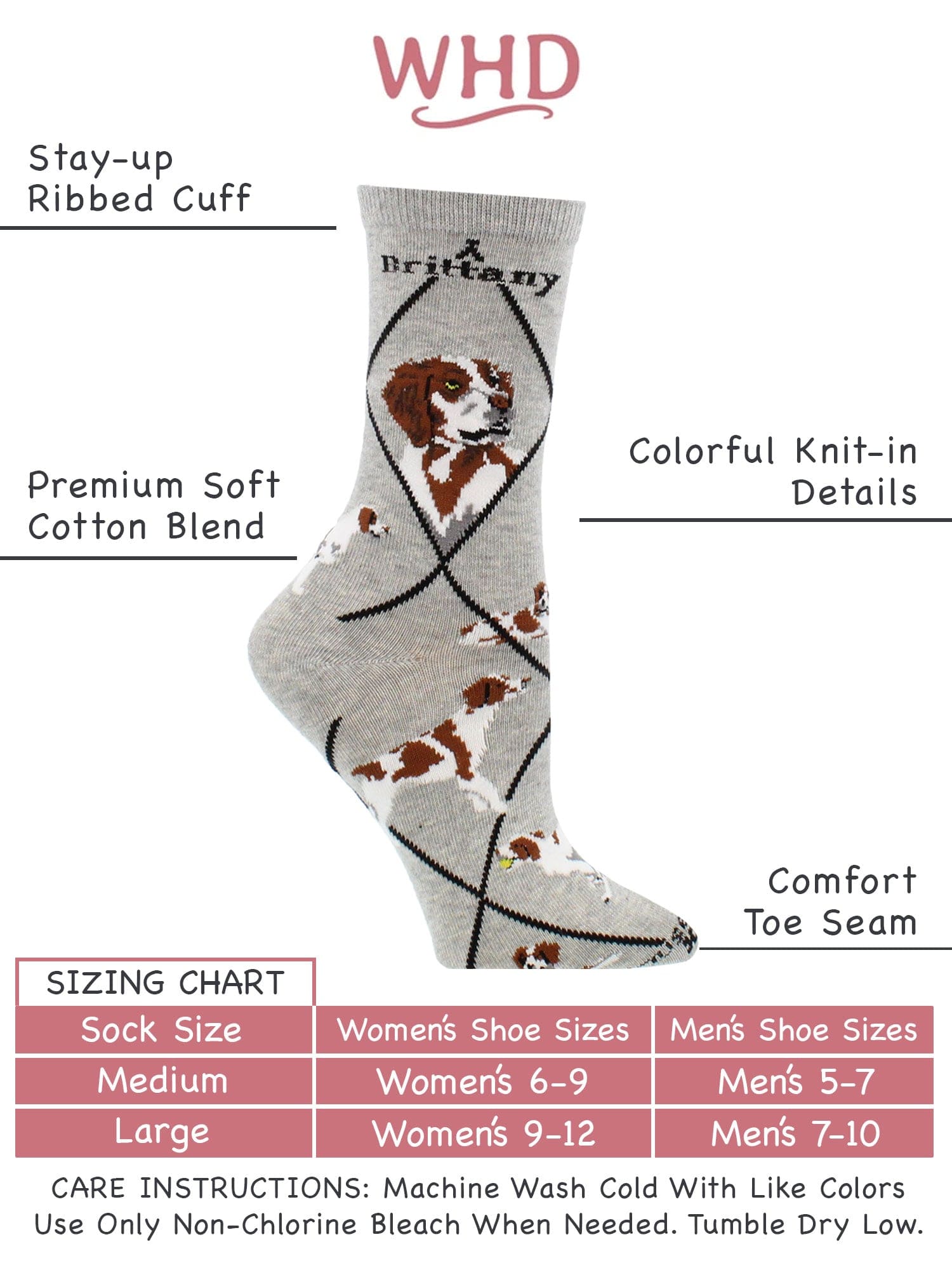 - PERFECT FOR DOG LOVERS - Incredibly intelligent and observant, the Brittany Spaniel will ensure that everything is in order and everyone is in their place! Your feet will find their home inside our adorable Brittany Spaniel crew socks.