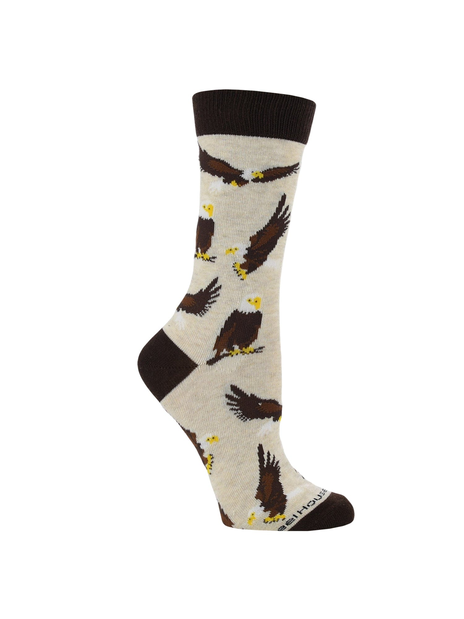 WHD Bald Eagle Crew Socks soar past snooze-ville socks! These whimsical socks swoop in majestic charm and cloud-soft comfort. Featuring an adorable bald eagle print in warm Oatmeal tones, the cozy, breathable blend includes 65% Cotton, 20% Polyester, 12% Nylon, and 3% Spandex, perfect for lounging, gifting, or spreading your wingspan style. A fun 1-pack for gifting or keeping.