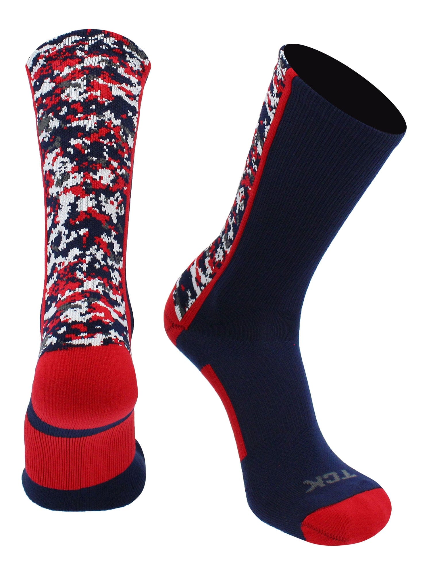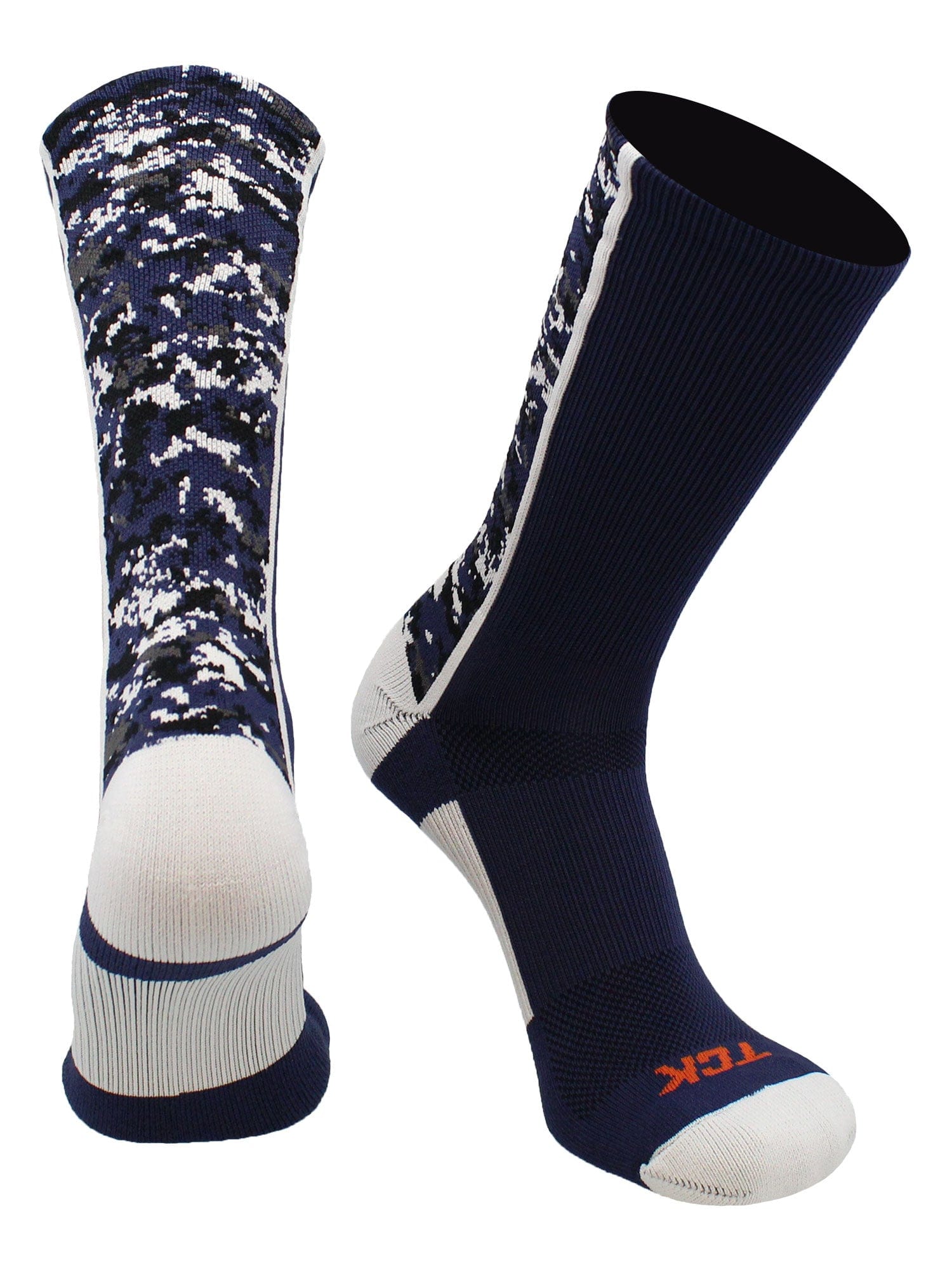 TCK Digital Camo Athletic Performance Crew Socks are a must have for your next game, outing, or practice. Featuring moisture control yarns, breathable mesh, ergonomic cushion, arch compression, and a double welt top, they provide maximum athletic performance. These socks are suitable for both boys and girls and come in youth and adult sizes. Our crew socks are great for basketball, football, lacrosse, wrestling, volleyball & more! Founded in 1961, TCK socks are manufactured with pride in the USA.