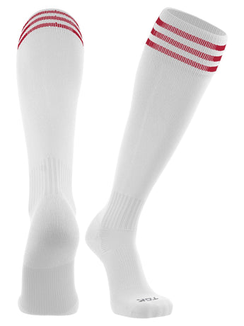 - HIGH PERFORMANCE SOCCER SOCKS: A classic 3 stripe soccer sock, with extra stretch and room for shinguards. Ideal for youth soccer, teenagers playing competitively or adult soccer leagues. Practice and train for games or matches in these TCK soccer socks.