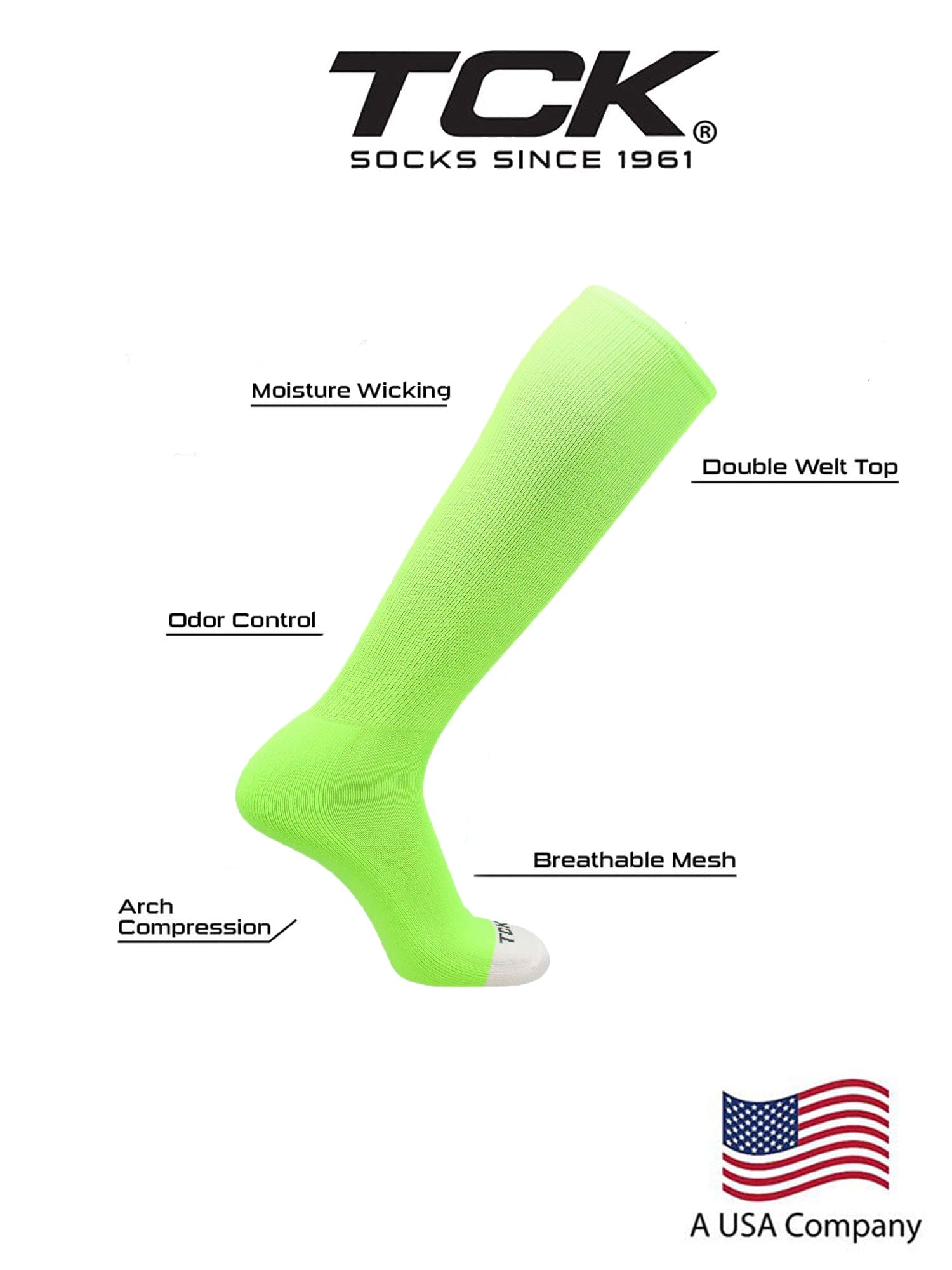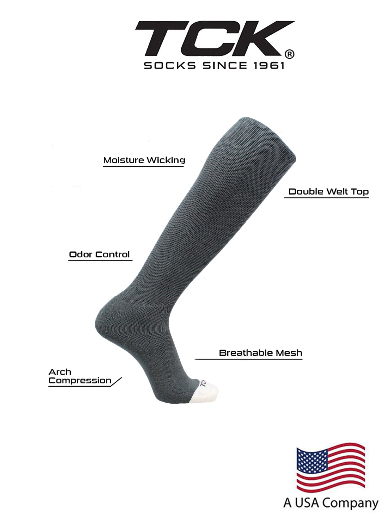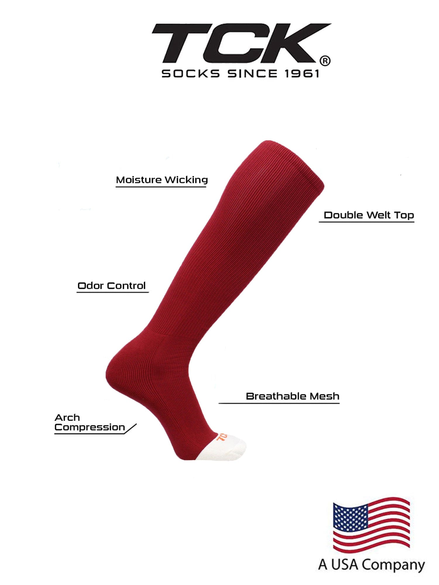 Our TCK Prosport OTC socks are a must have for your next game, outing, or practice. Designed by the leaders in team athletic socks, the Prosport is the ideal weight and length for athletes, while it also provides maximum performance and durability. TCK was founded in 1961 in North Carolina, where we still operate today. When purchasing TCK products, you can feel proud to support a USA based company that directly supports American employees.