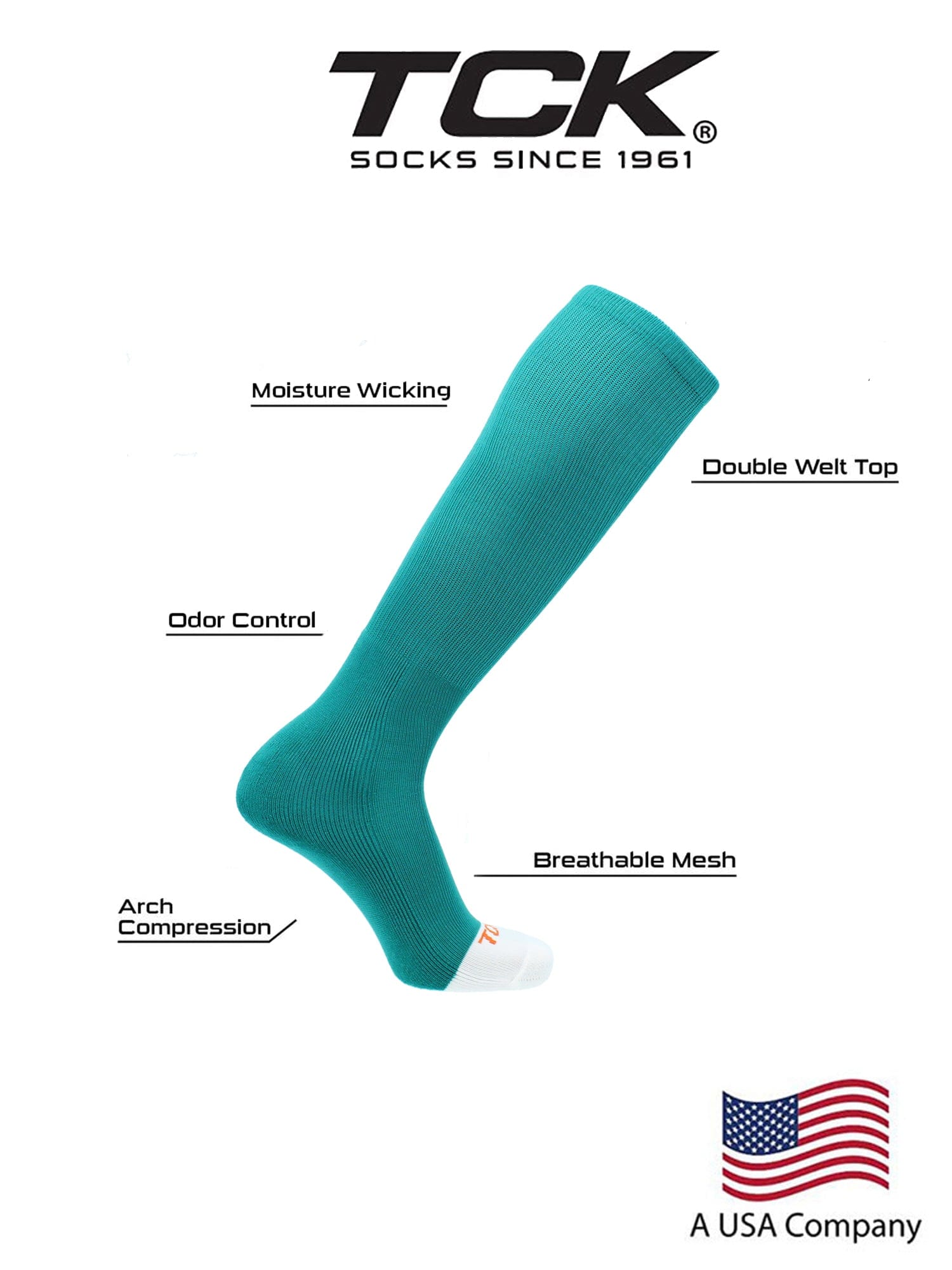 • DESIGNED FOR PERFORMANCE: Our over the calf athletic socks feature our patented TCK DRY moisture control technology which wicks moisture away to keep your feet dry and prevent blisters. There is also a breathable mesh at the top of the foot which helps air flow through the sock. Additionally, our socks are infused with advanced yarns to help control odor.