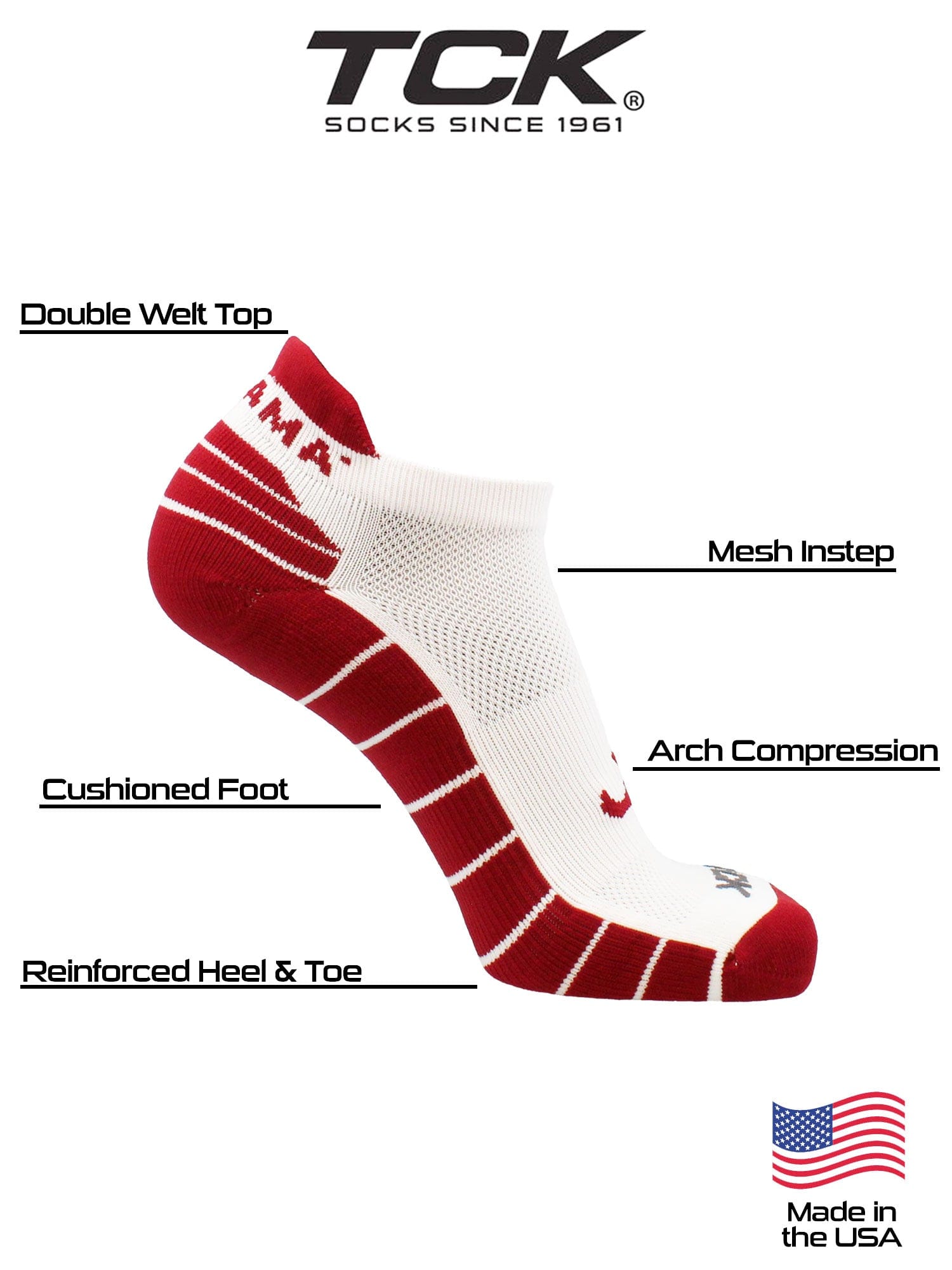 TCK college golf socks, low cut socks with tabbed heel. Heel tab socks ensure the socks don't slip down. Get ready to cheer on your favorite team during the season! Wear these to the tailgate party, on the golf course, working out, or lounge around the house. Offering comfort, breathability, and durability these high quality University of Alabama Crimson Tide socks are an ideal gift for birthdays, stocking stuffers or going back to school. Gear up for the big game! Roll Tide!