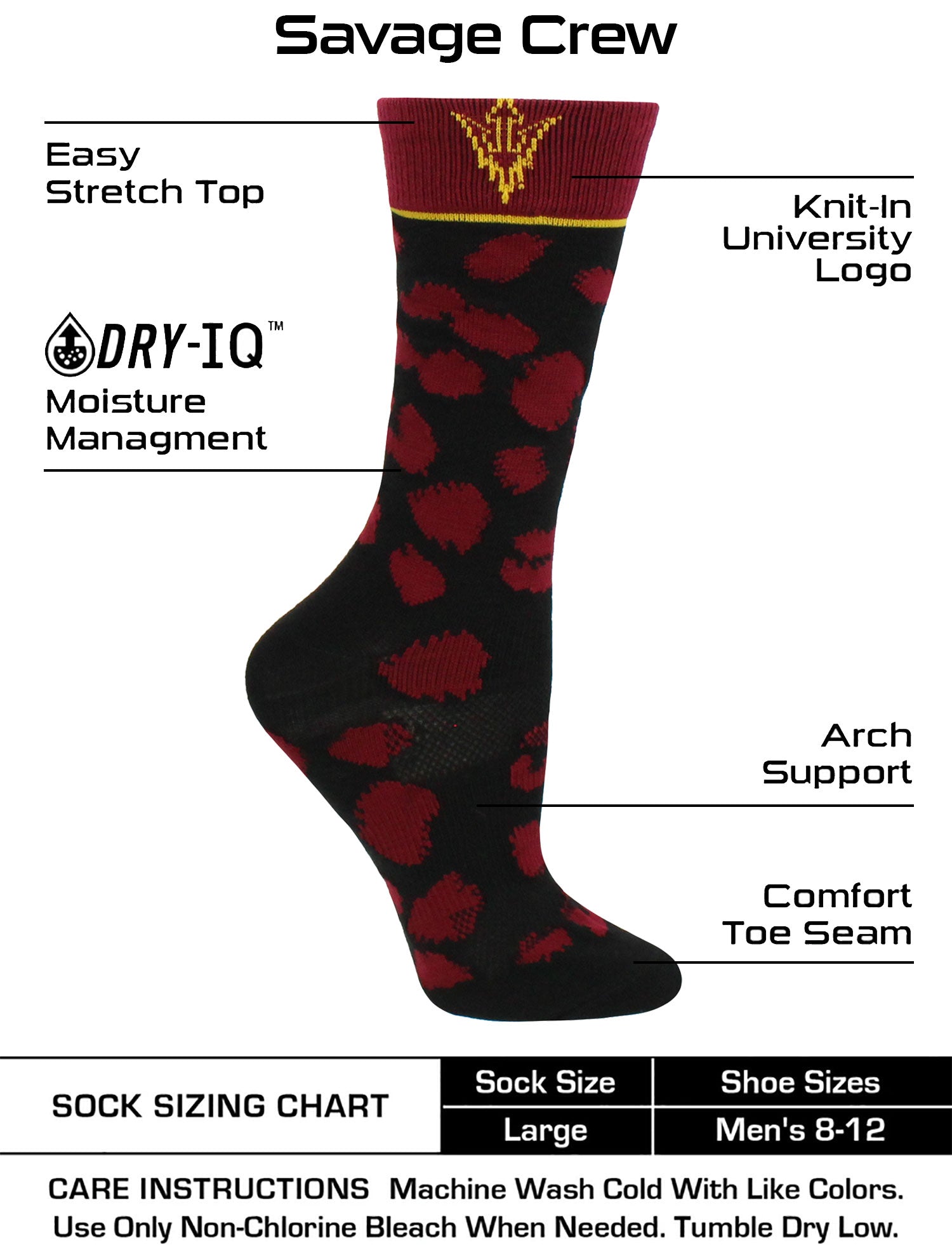 • COMFORT AND BREATHABILITY: These premium quality Arizona State Sun Devils leopard print casual socks provide soft comfort. Moisture management technology pulls moisture and sweat away from skin.