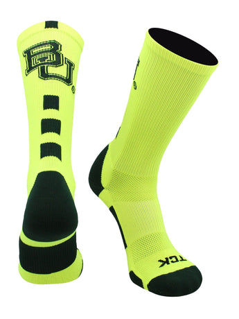 Wear your loud and proud school pride on your feet and be ready for even the most strenuous activities. Perfect with sneakers and slides, these socks let you be athletic ready while you support your school. Offering comfort, breathability, performance, and durability these high quality Baylor University Bears socks are an ideal gift for Father's Day, birthdays, stocking stuffers or going back to school. Made up of 77% Polypropylene, 17% Nylon, 3% Elastic, 3% Lycra Spandex. Go Bears!