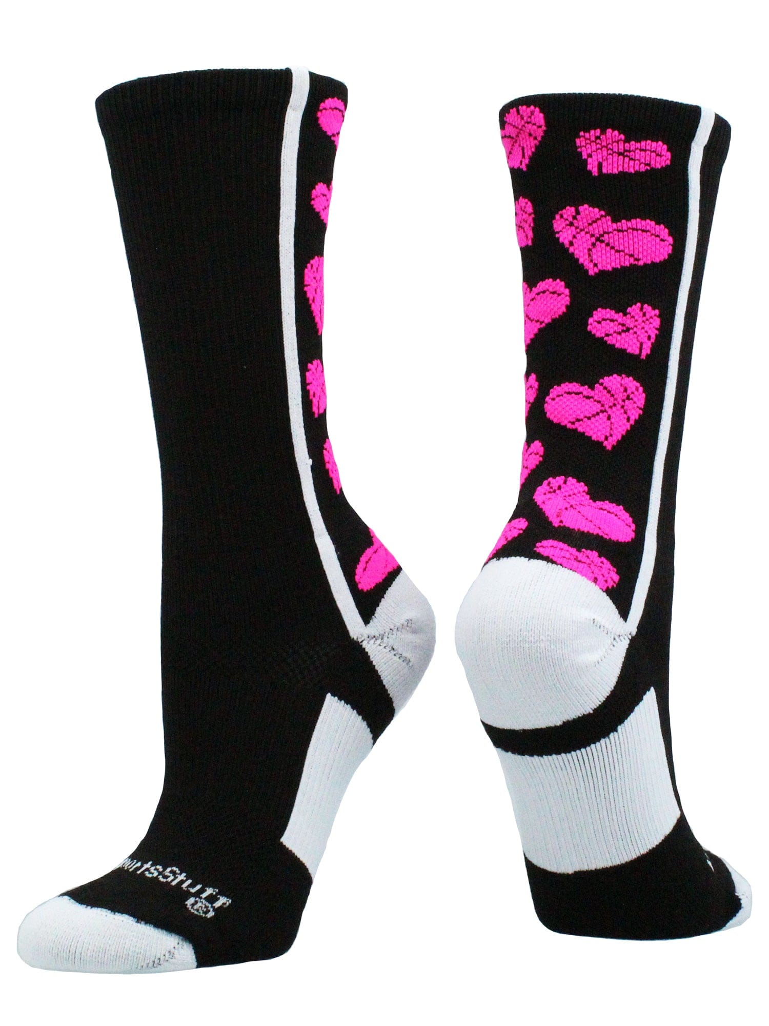 MadSportsStuff Crazy Basketball Hearts Crew Socks. High performance athletic socks for all team sports and elite athletes.