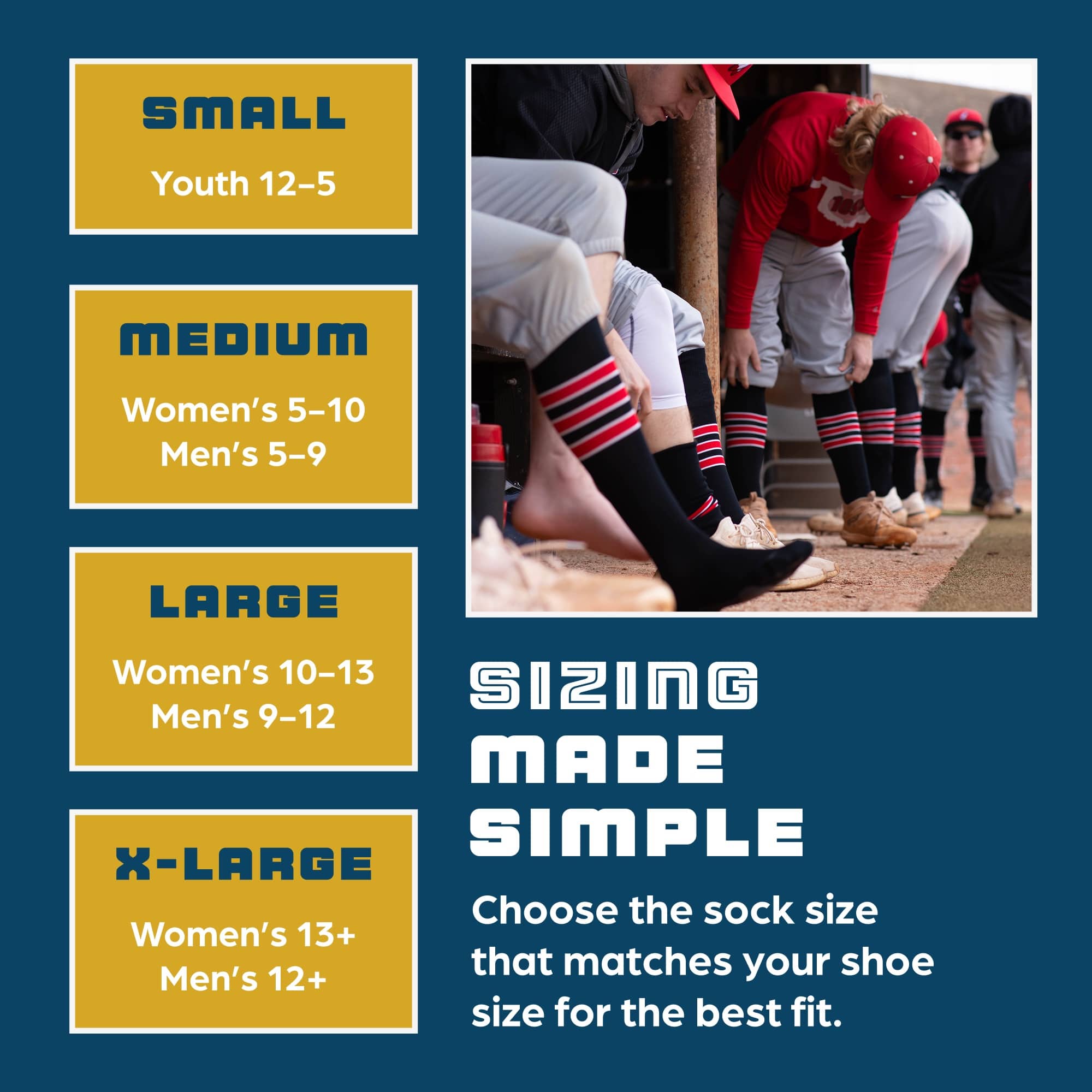 - ACCURATE SIZING: MadSportsStuff Sock Size: Small - Youth Shoe Size 12-5, Medium - Womens Shoe Size 5-10 Mens Shoe Size 5-9, Large - Womens Shoe Size 10-13 Mens Shoe Size 9-12, X-Large Womens Shoe Size 13+ Mens Shoe Size 12+