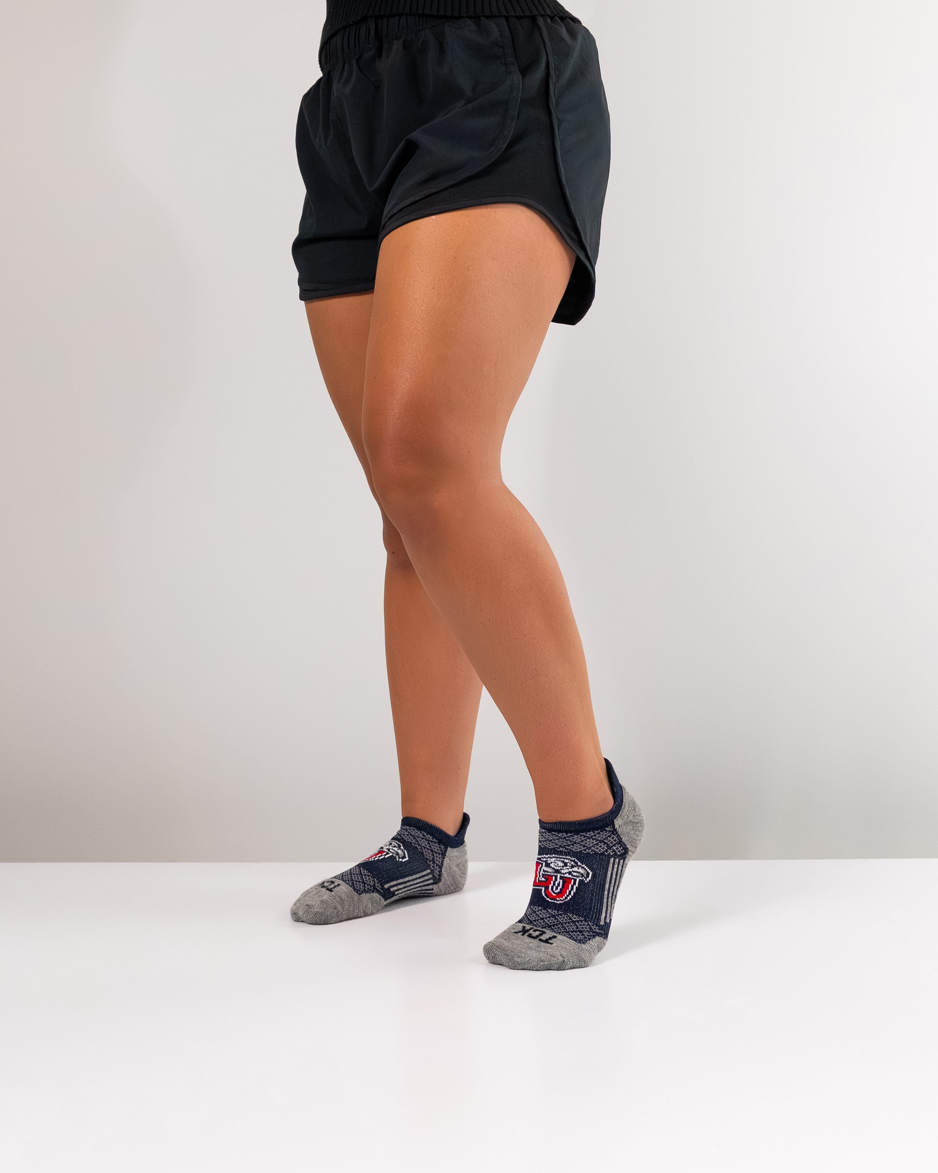Step up your sock game with TCK's Liberty Flames no show socks, high performance NCAA sock made in the USA. Designed for sneakerheads, golfers, runners, and fans alike, these socks feature a soft merino wool footbed, breathable mesh upper, arch support, and a smooth toe seam. The heel tab protects without showing. Perfect for all-day comfort, year-round wear, and gifting for birthdays, Father's Day, grads, or Christmas.
