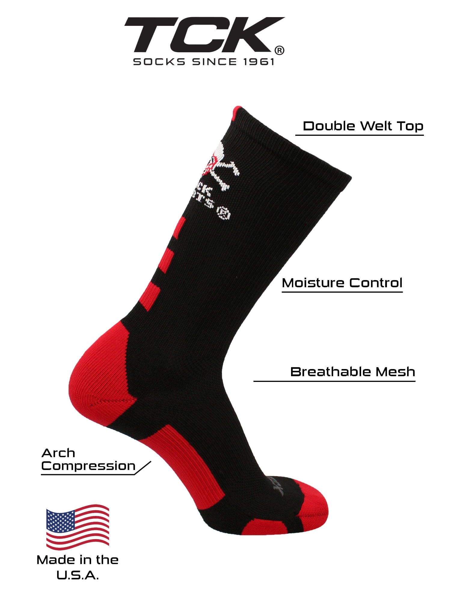 - COMFORT AND BREATHABILITY: These premium quality Nebraska Socks provide soft comfort. Mesh panel ventillation above the foot allows for proper air flow. Keeping the feet dry. Moisture management technology pulls away moisture from skin.