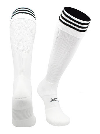TCK Premier Soccer Socks with 3 stripes are a must have for your next game, outing, or practice. Featuring moisture control yarns, breathable mesh, ergonomic cushion, arch compression, a fold down top, they provide maximum athletic performance. These socks are suitable for both boys and girls and come in youth and adult sizes. Founded in 1961, TCK socks are manufactured with pride in the USA.