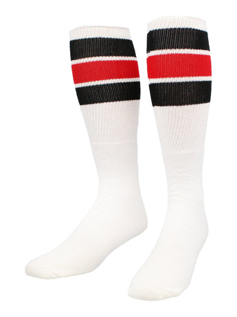 - FUN SPORTS SOCK: Retro 80's style over the calf striped tube socks great for volleyball, field hockey, soccer, cheer, kickball, wrestling, lacrosse, softball, basketball, flag football and more! Stand out on the field or court with these Retro 3 Stripe Multisport Tube Socks from TCK.