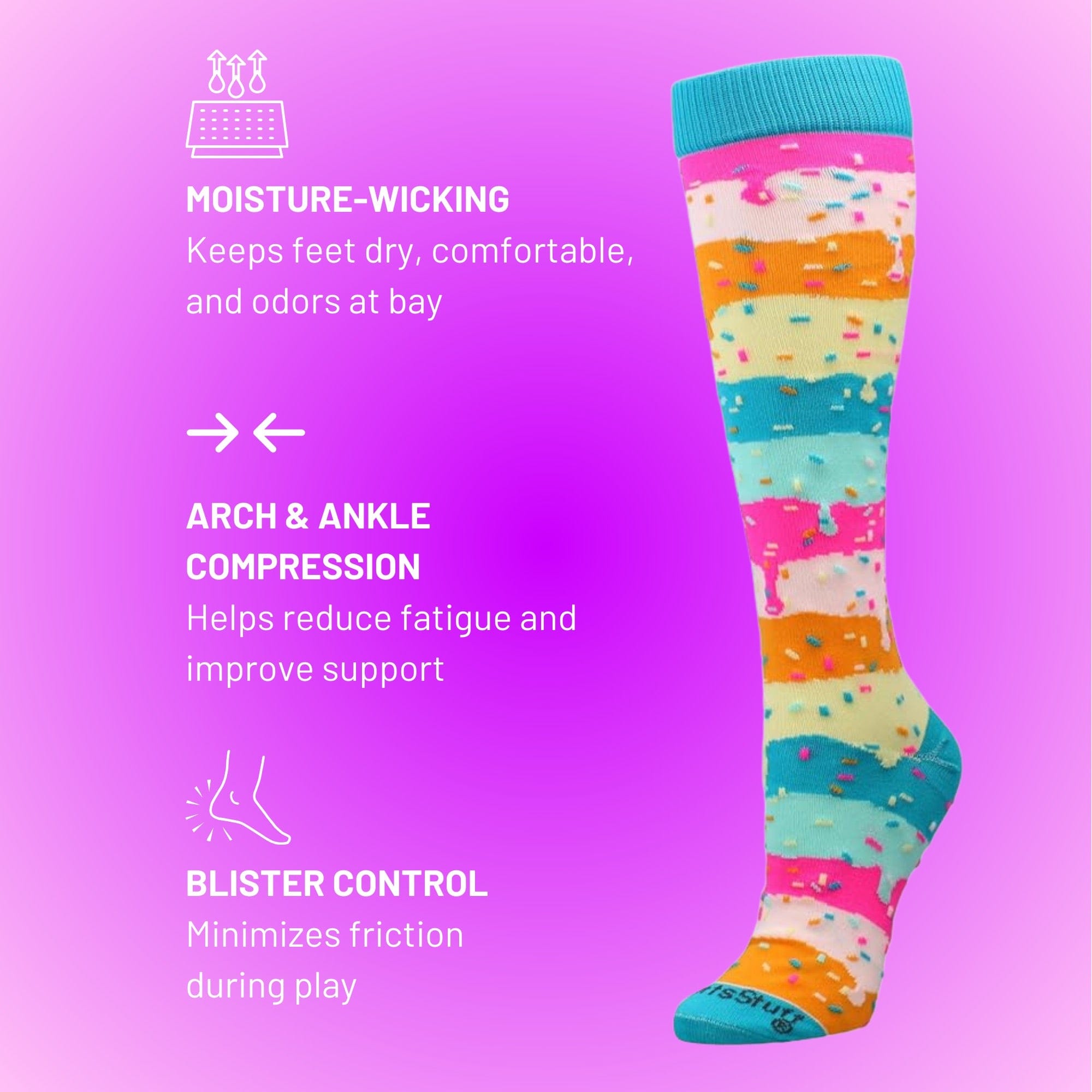 - FUN & FUNCTIONAL: These Rainbow Sprinkle Socks are perfect for adding a pop of color to any outfit—whether you're dressing up for a themed event, showing team spirit, or just having fun. Great for casual wear, costumes, school activities, and a wide range of sports and recreational activities. Ideal for boys, girls, teens, and teams!