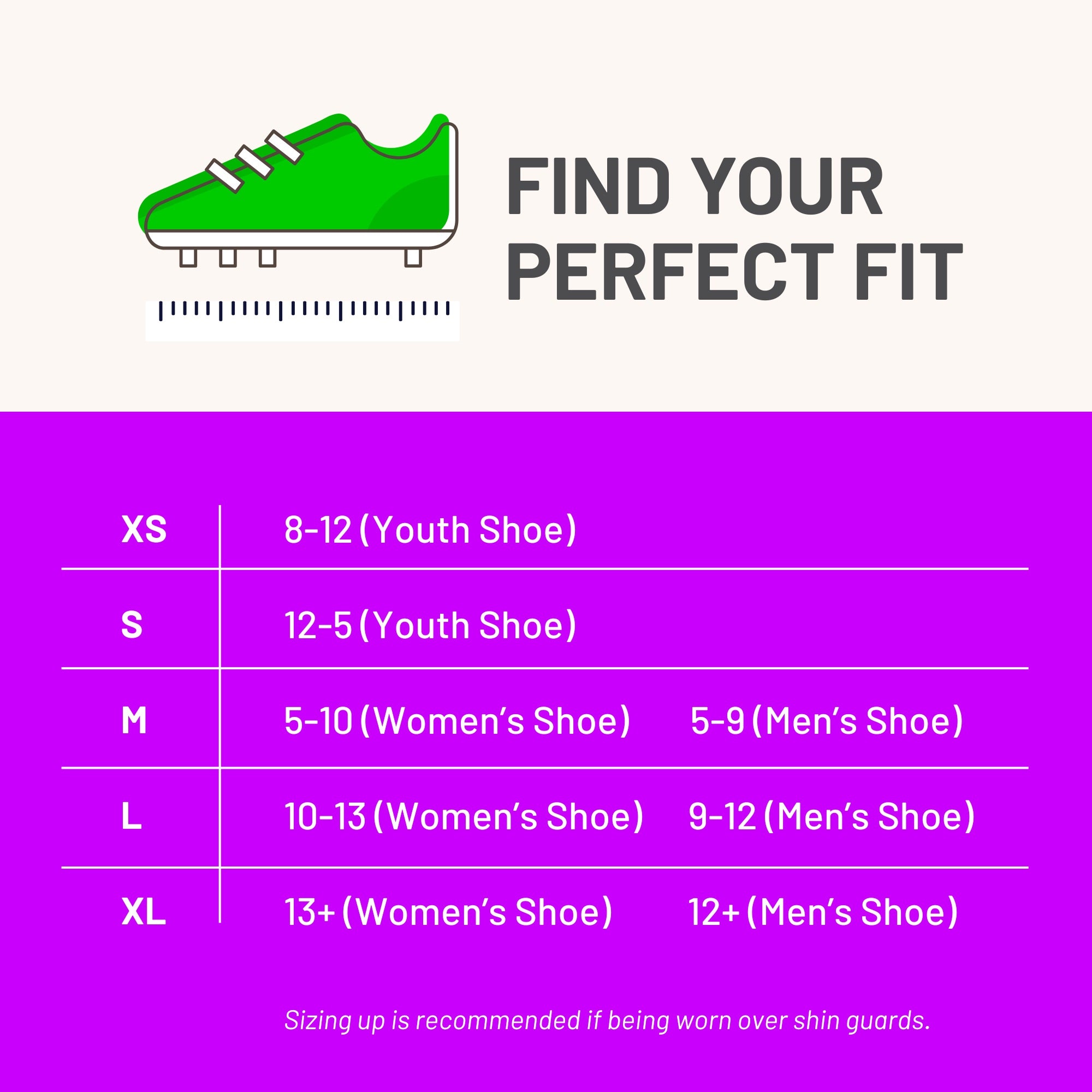- Sizing Info: X-Small: Youth Shoe 8–12 (Ages 3–5), Small: Youth Shoe 12–5, Medium: Women’s Shoe 5–10 / Men’s 5–9, Large: Women’s 10–13 / Men’s 9–12, X-Large: Women’s 13+ / Men’s 12+