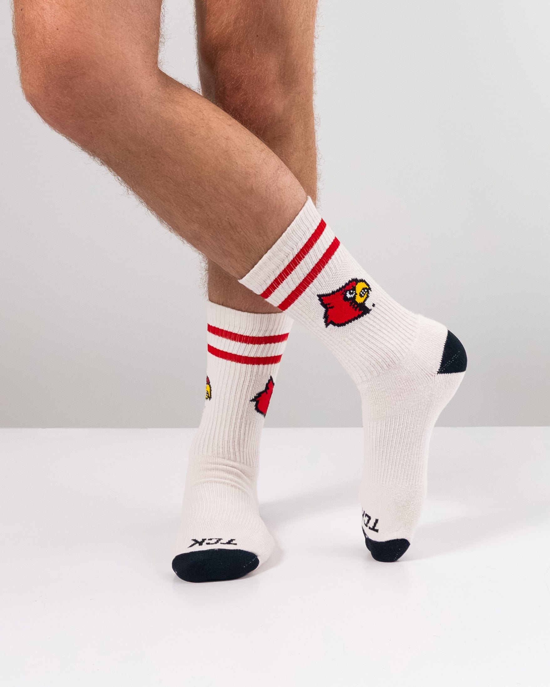 Show off your school pride with these Louisville Cardinals socks. TCK's Vintage NCAA Socks, is a perfect blend of nostalgia and modern comfort. Each pair of TCK socks for Louisville Cardinal fans is designed to reflect the history and tradition, making them the perfect addition to any fan's wardrobe. These socks are designed for die-hard fans who appreciate both style and performance. Whether you're cheering from the stands or showing your pride around town, these socks offer the ideal way to support your favorite team. Made with super soft cotton, these socks provide comfort with every step. The arch compression ensures a secure fit, giving you the support you need during any activity. A smooth toe seam prevents irritation, while the breathable mesh design keeps your feet cool and dry. The half cushioned footbed delivers just the right amount of padding, making these socks perfect for all-day wear. Plus, the double welt stay-up top ensures that your socks stay in place, no matter how active you are. Proudly made in the USA, TCK's Vintage NCAA Socks are a testament to quality American manufacturing. Show your true colors and show your pride in these classic, comfortable, and durable socks.