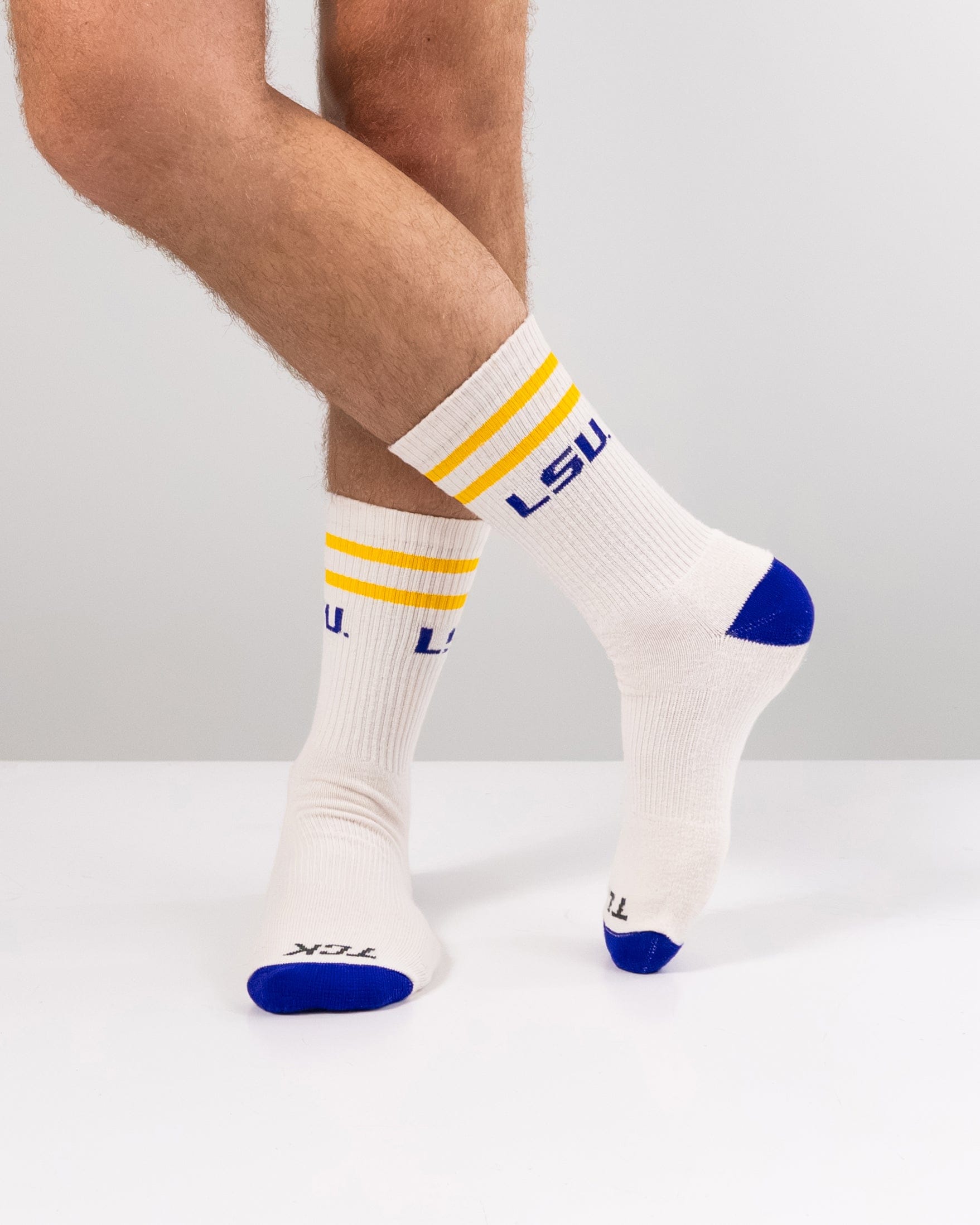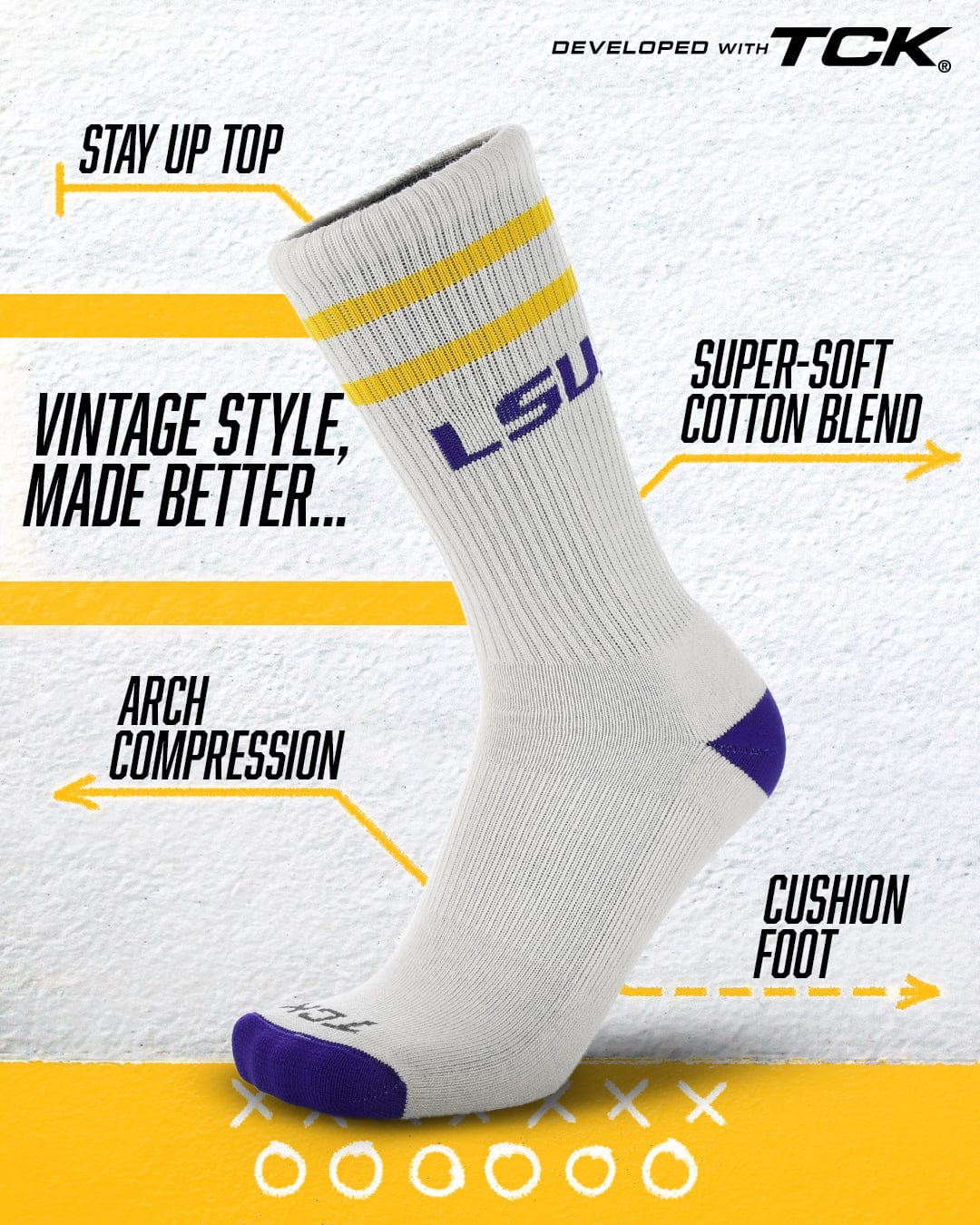 - Stylish, Vintage College Socks: Show off your LSU Tigers pride with our retro-inspired socks for women and men. Perfect for fans who want to combine style with team spirit.